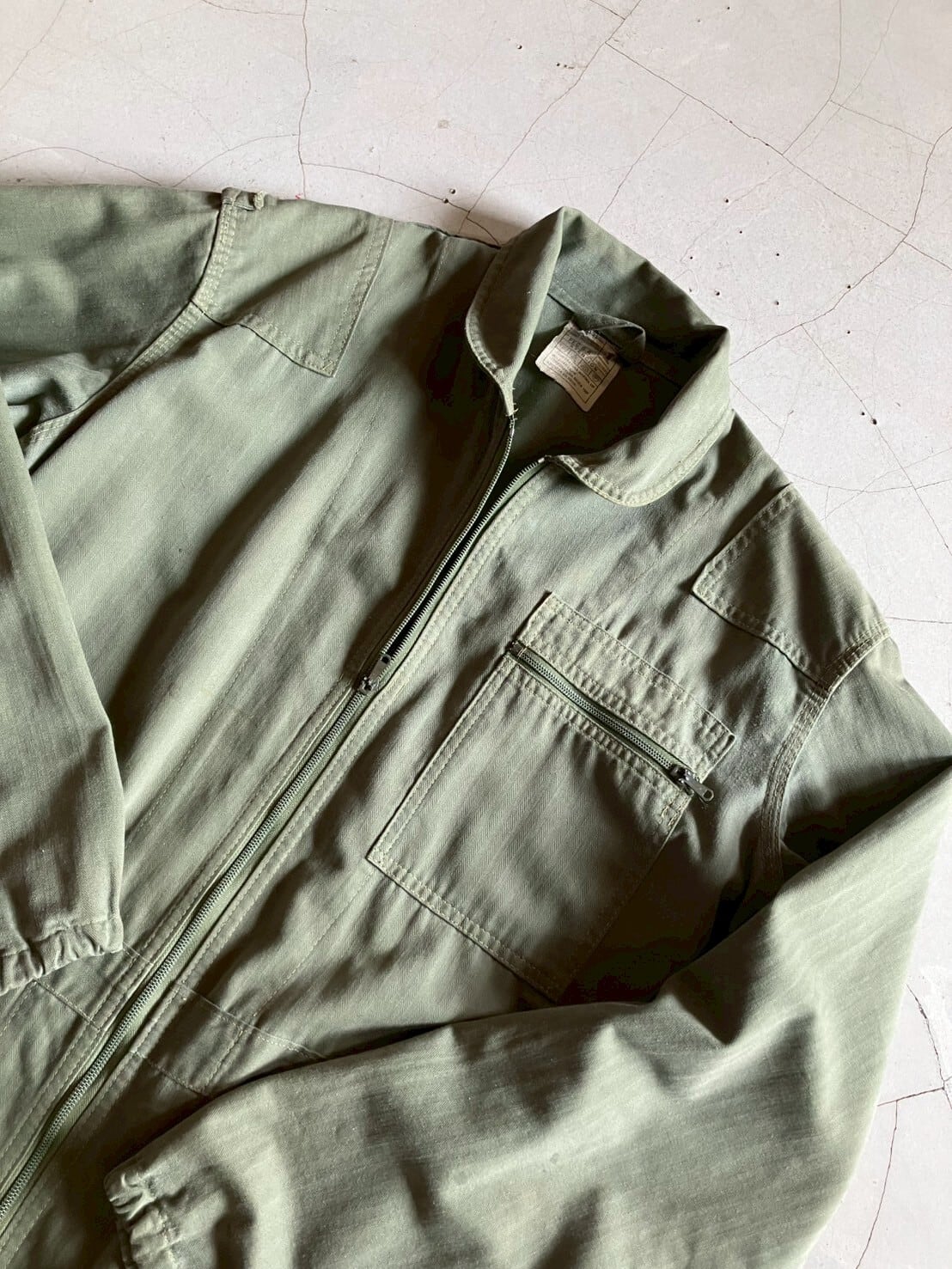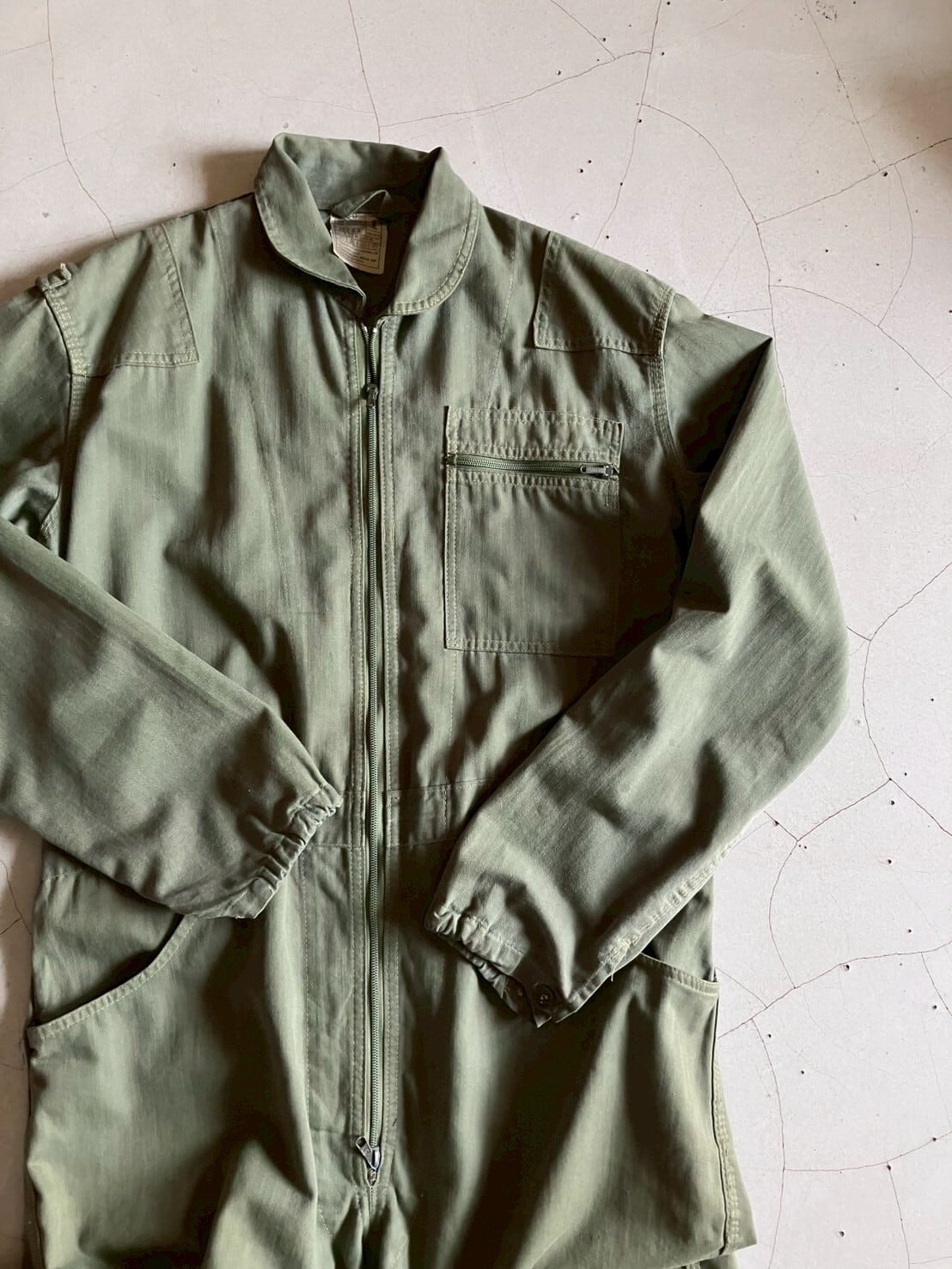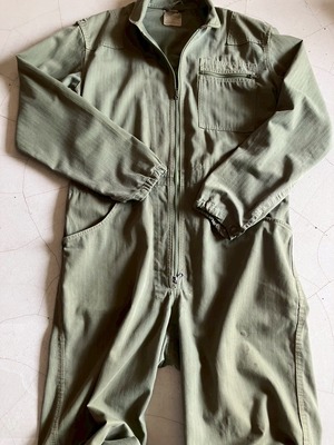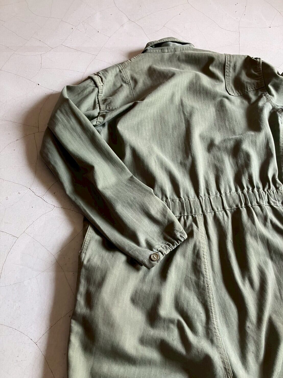 軍物のジャンプスーツ 古いものなのでオイルやペンキとび汚れが所々ごさいますが、味が出ていてかっこいいです レディースサイズはかなり貴重です 小柄な男性も着用できるサイズ感です 肩幅49 袖丈61 身幅55 ウエスト98 股上31.5 股下75 160cm,153cm