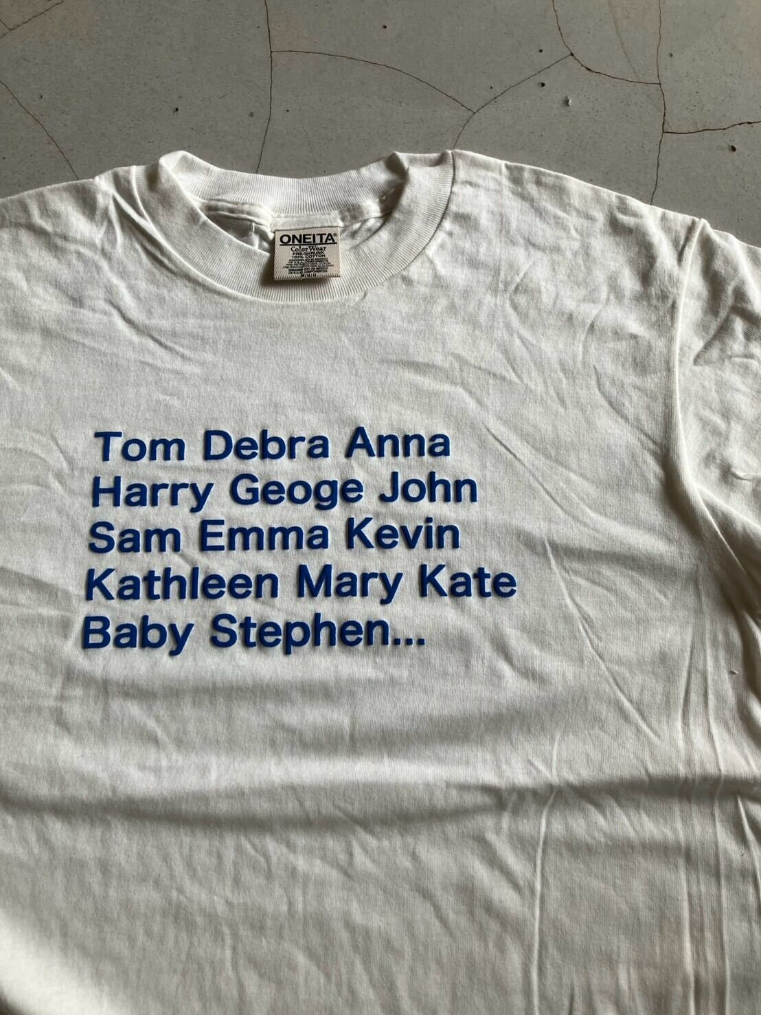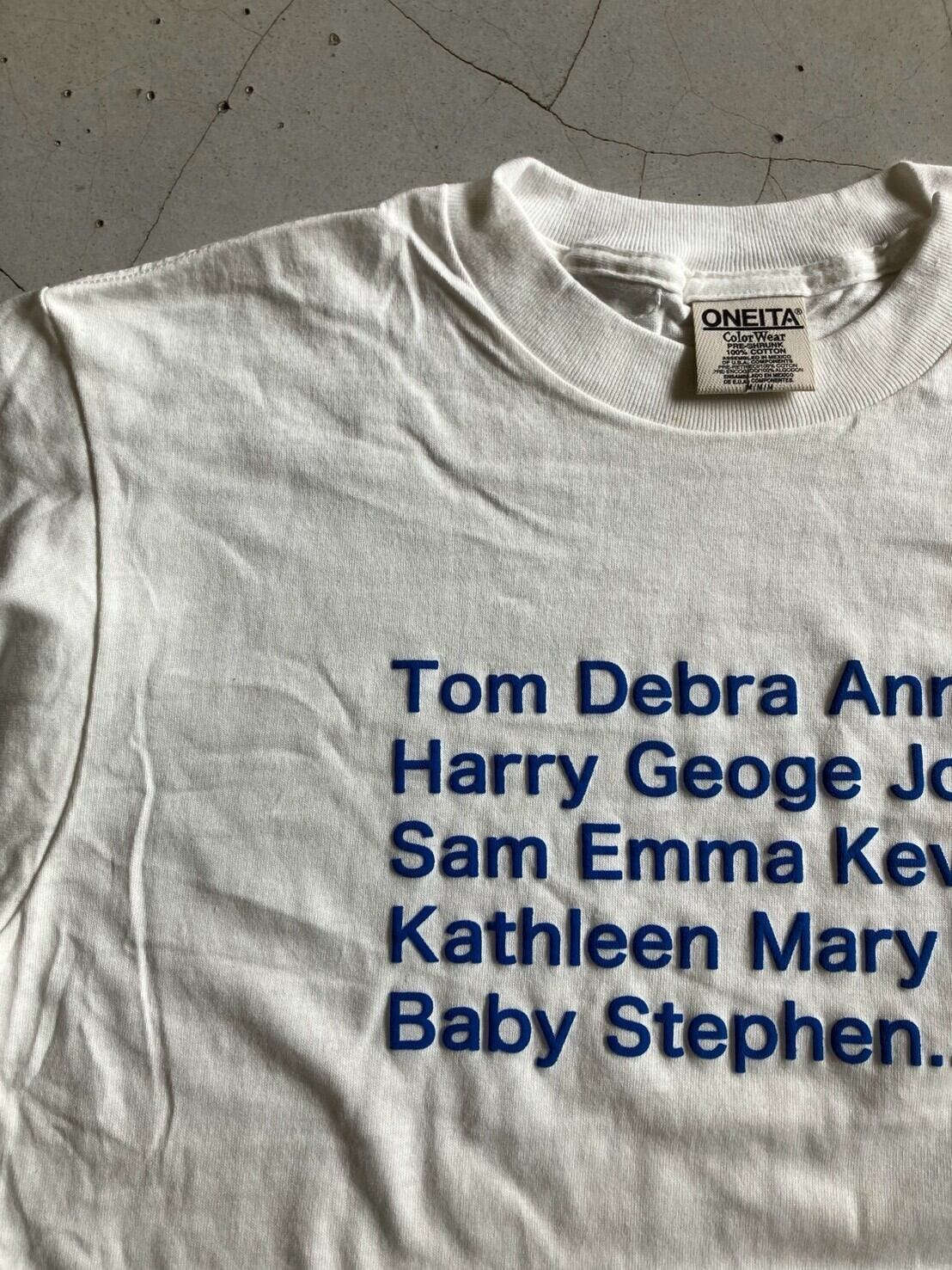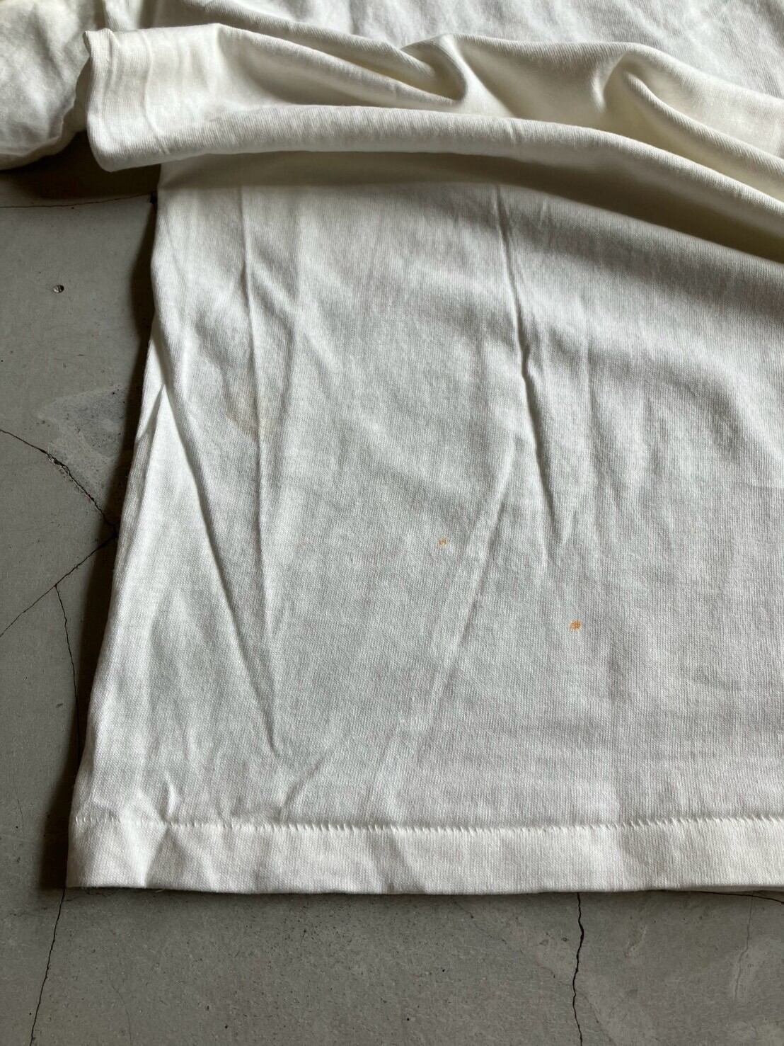 24SS ITEM / サンプルで製作したカラー アイボリーボディに明るいブルーの発泡プリント ボディは90年代のONEITAボディ シングルステッチ M-size 着丈75 身幅50 肩幅47 ※ 汚れや状態などあくまでUSED商品であることをご理解の上お求めください