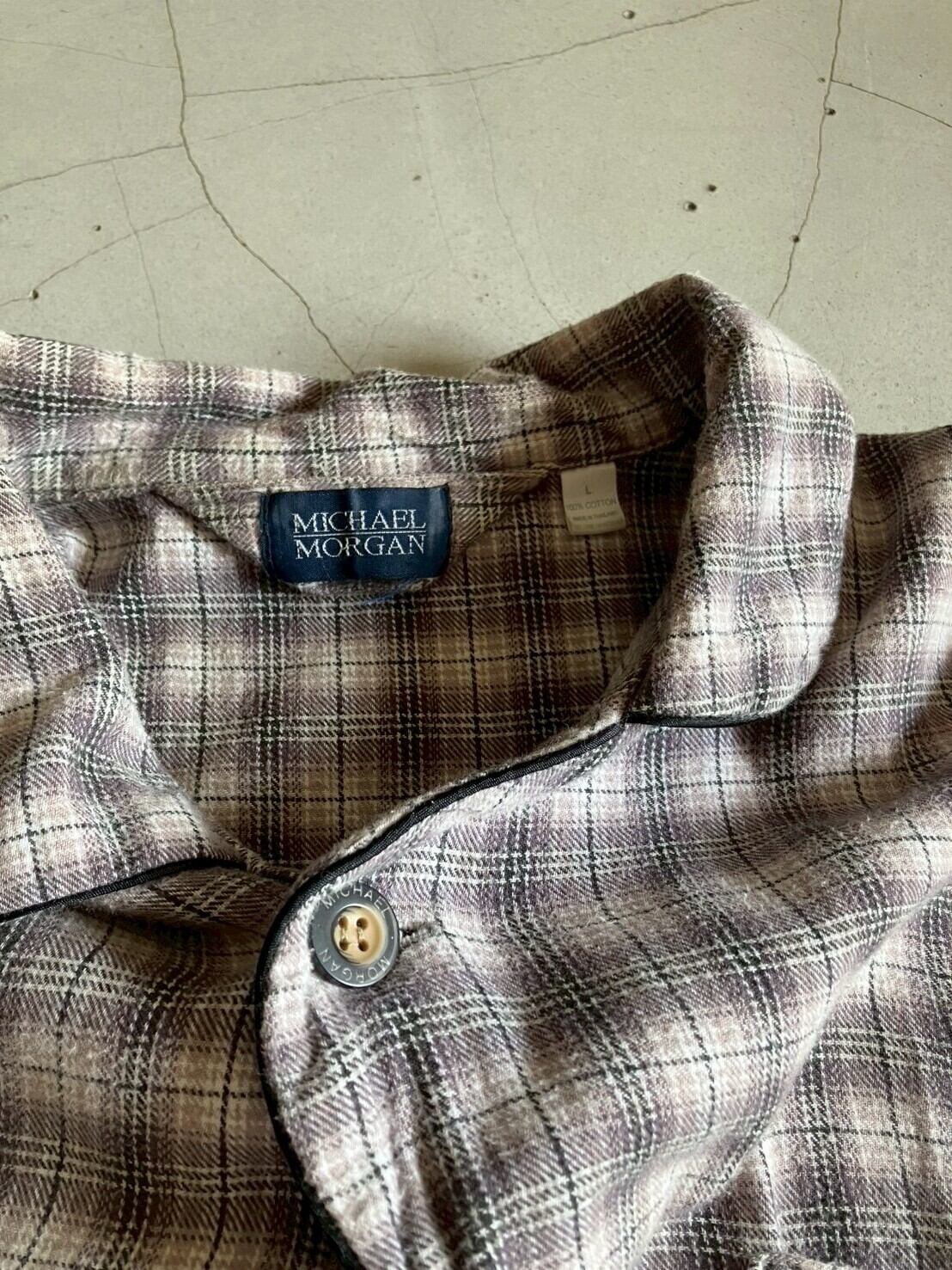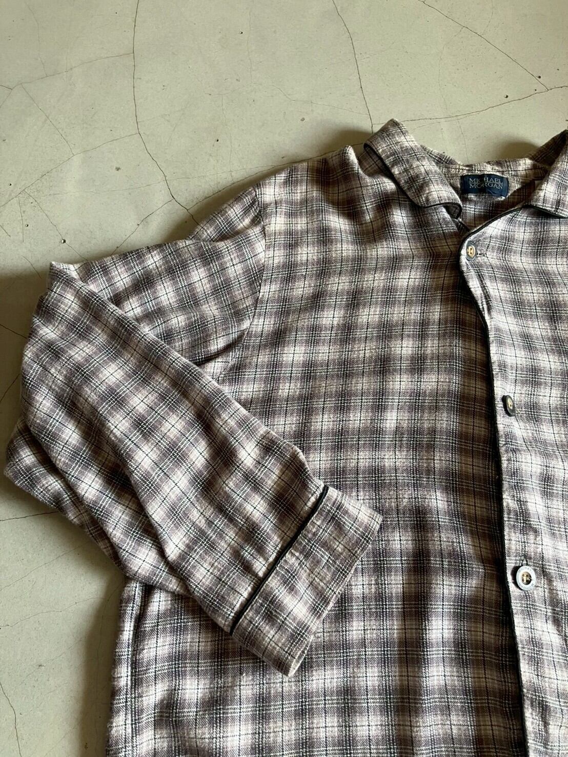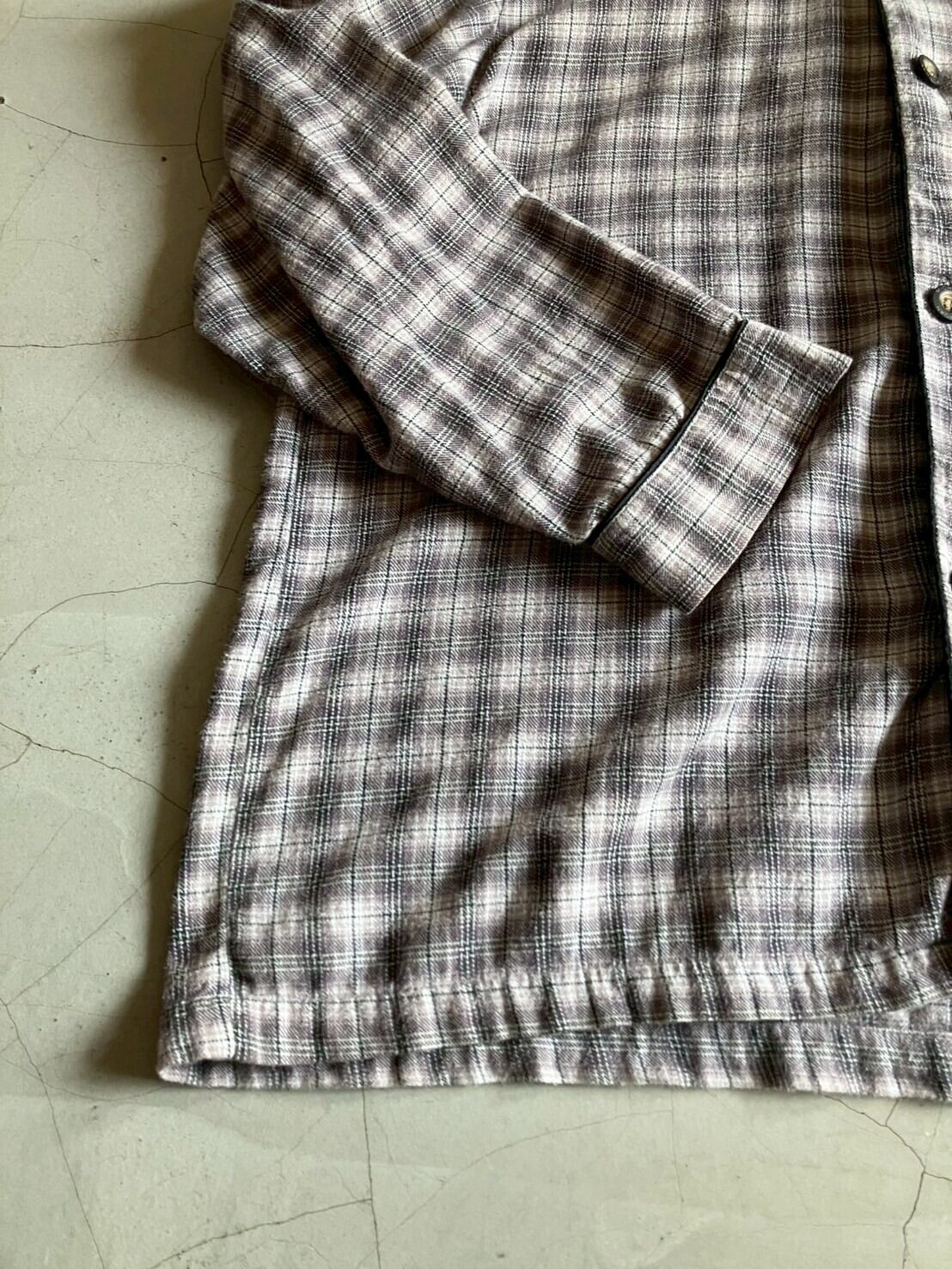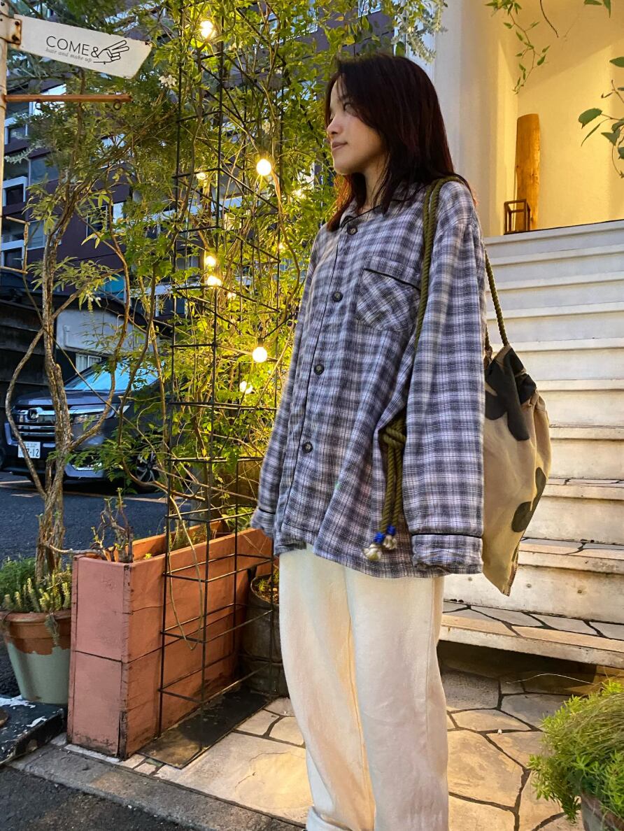 開襟仕様のチェックシャツ 淡いグレートーンで柔らかい印象 是非パジャマっぽく楽しんでください 着丈75 身幅60 肩幅45