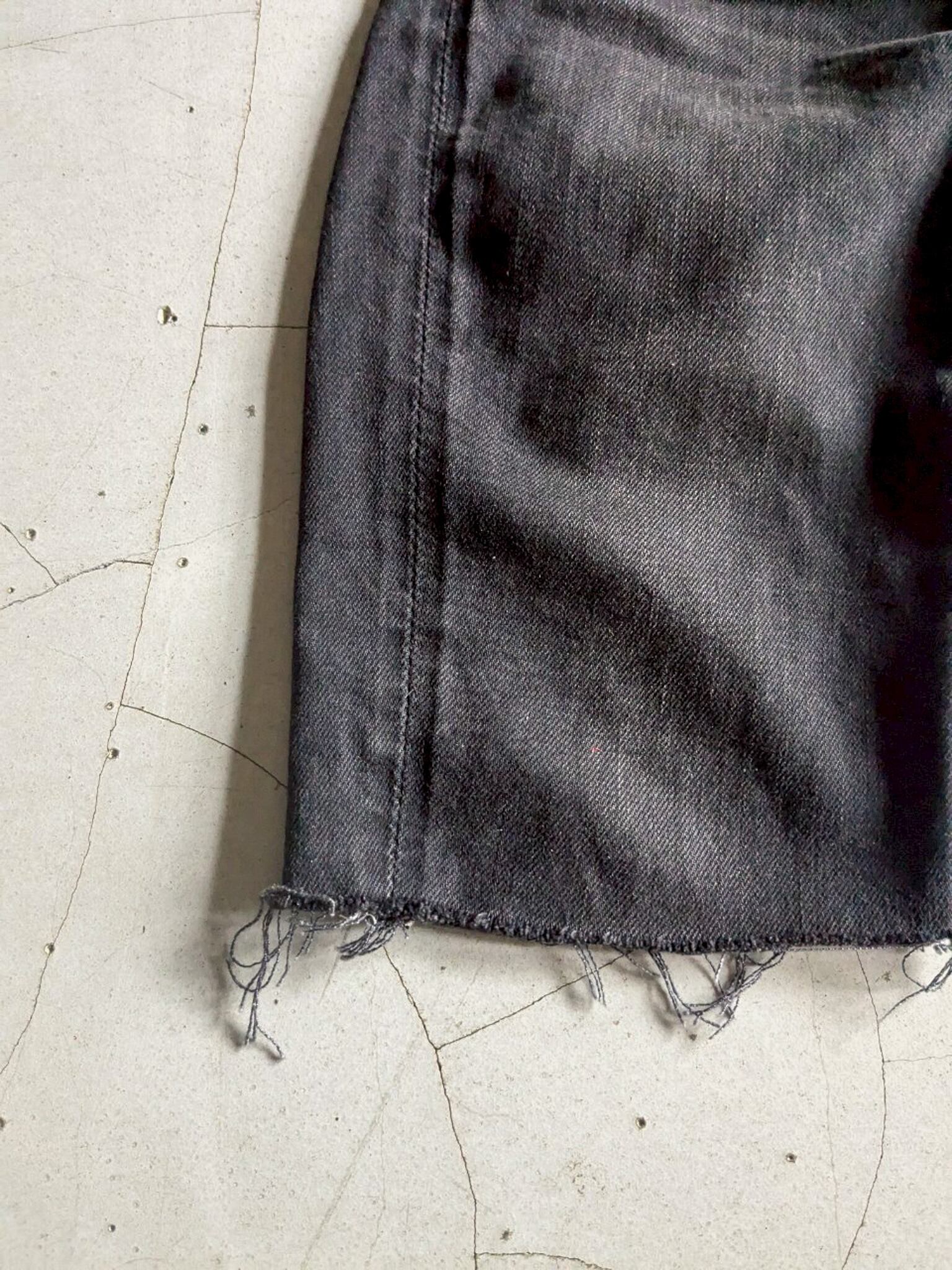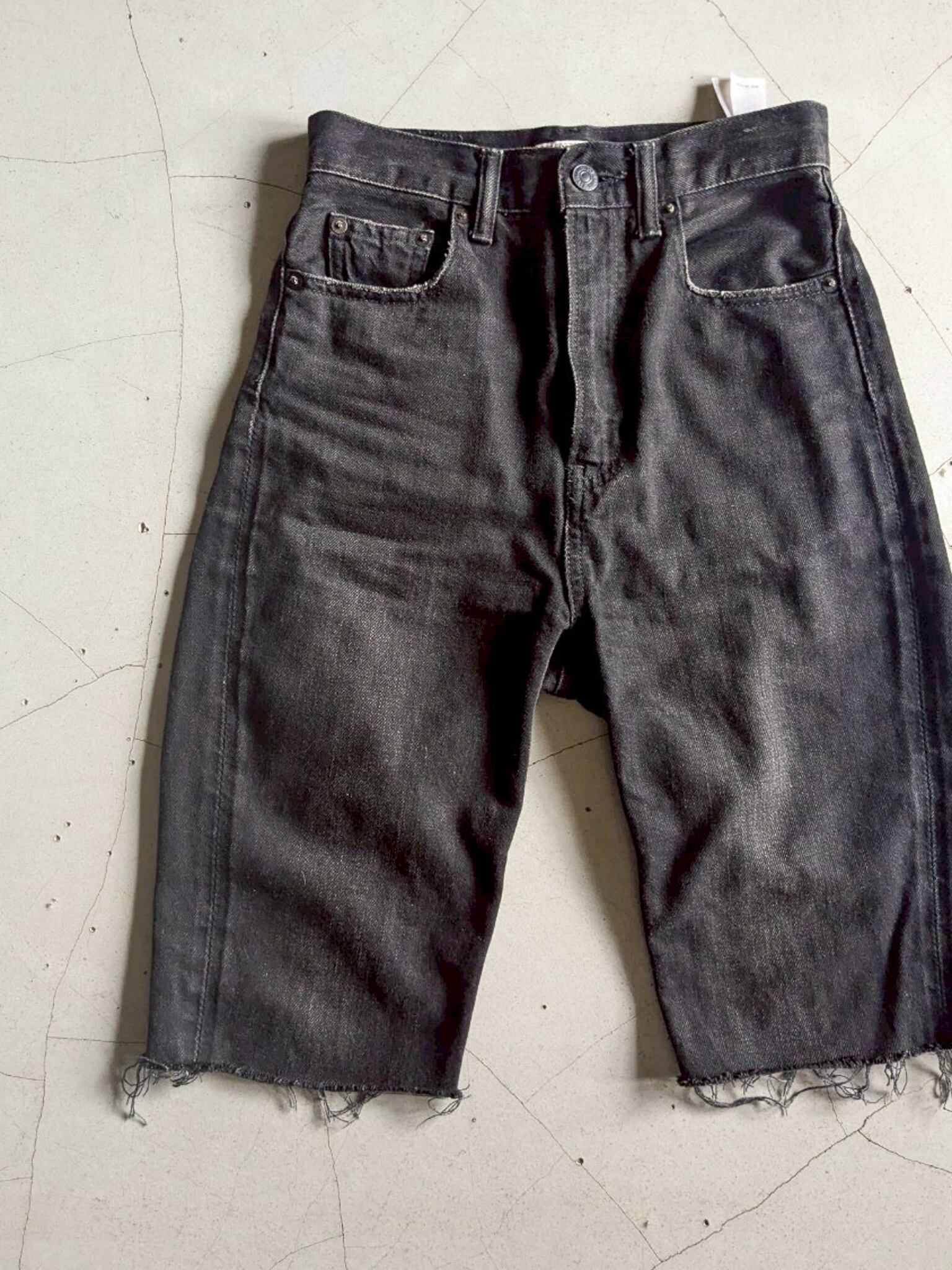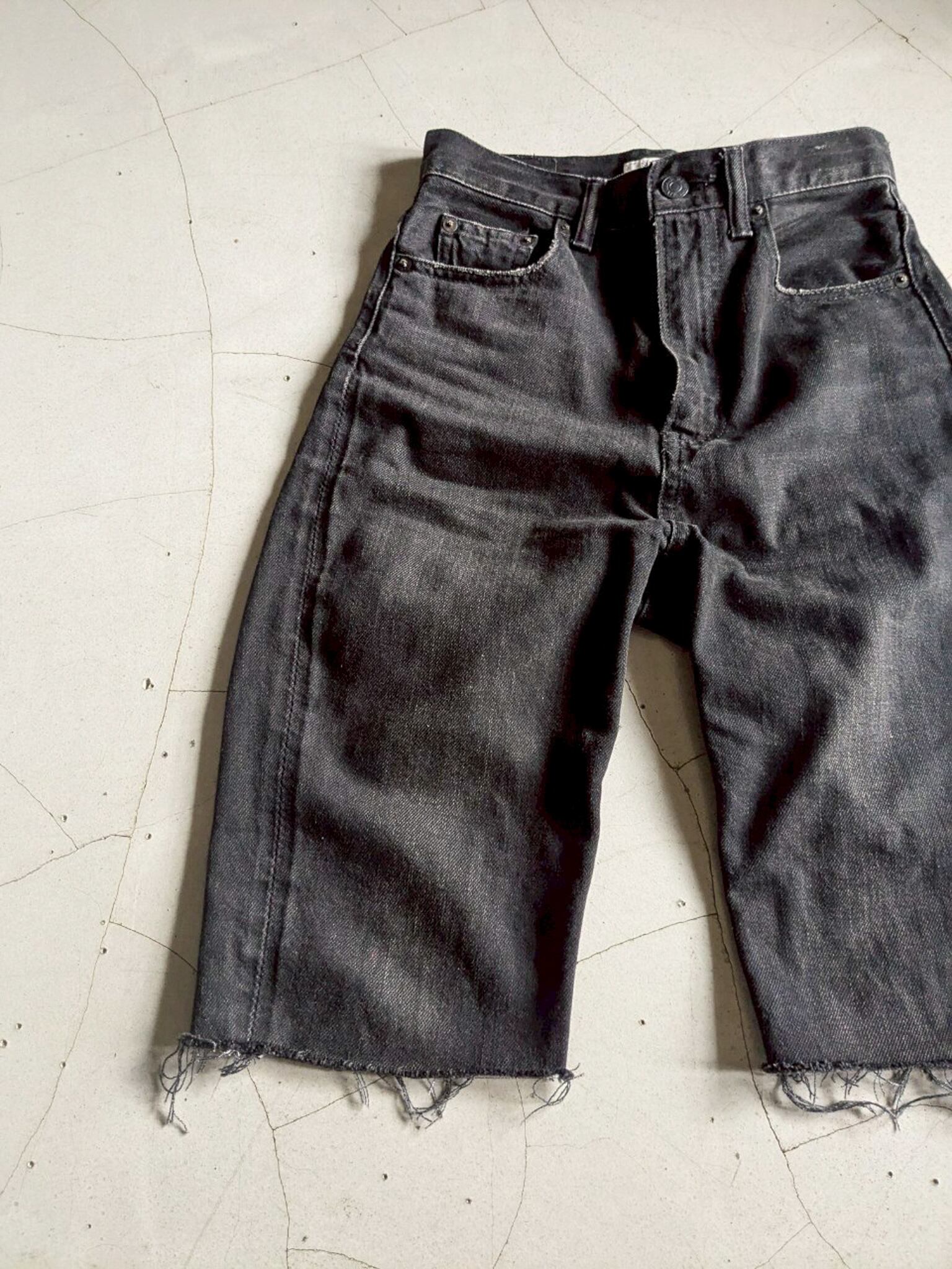 セルフカットオフしたブラックのハーフパンツ 気に入って長年着用していたため、いい具合に色落ちしています◎ レギンス感覚でオーバーサイズのTEE、ロンTと合わせるとバランスGOOD◎ ウエスト32 股上30 股下28 153cm