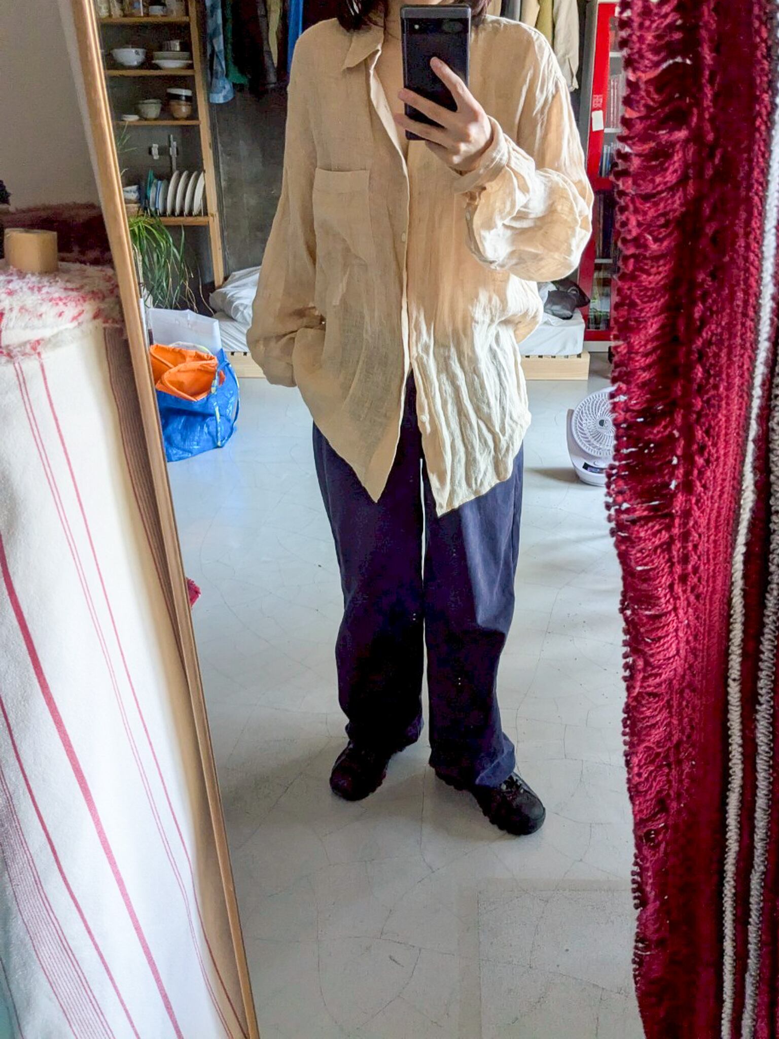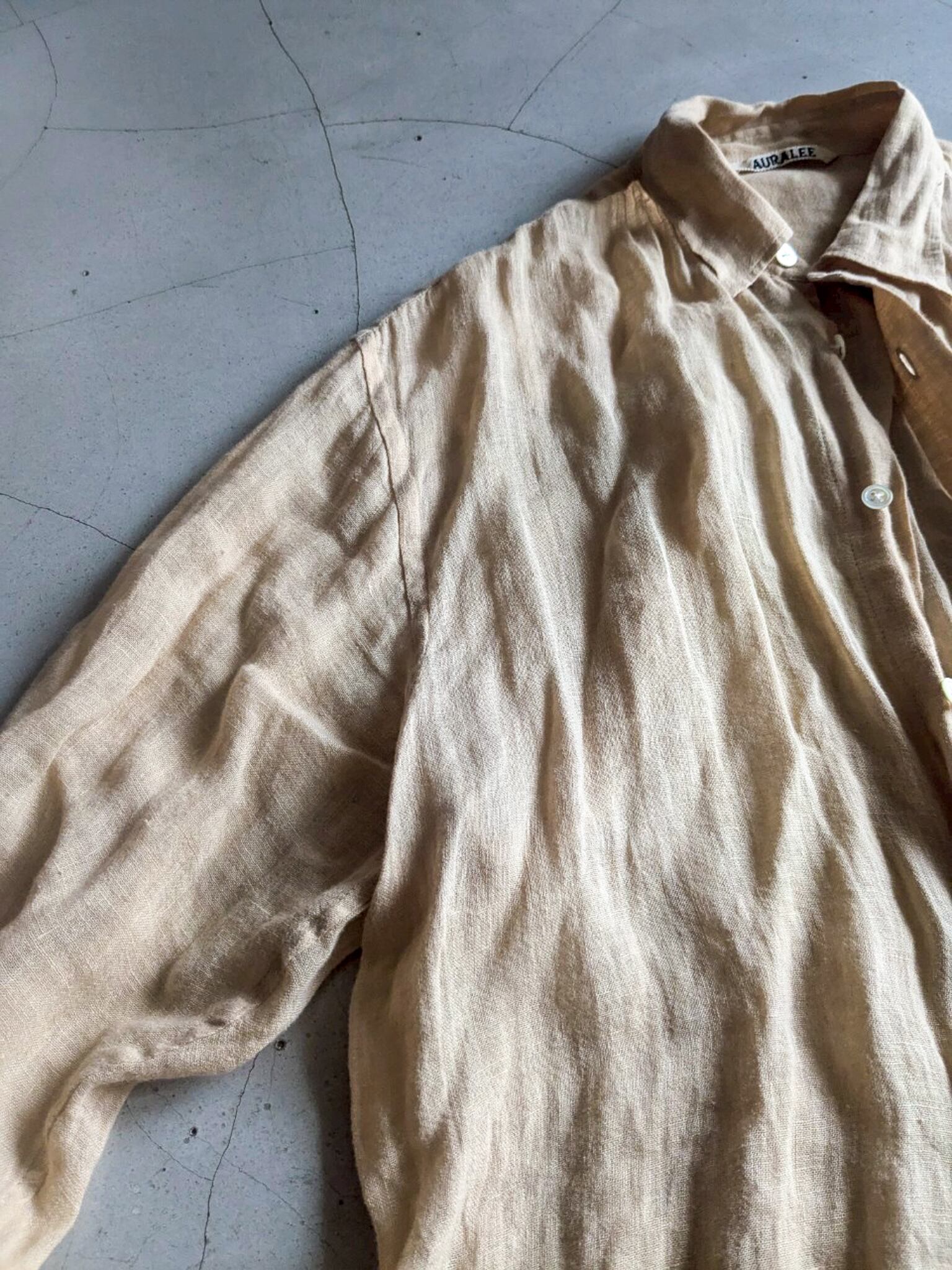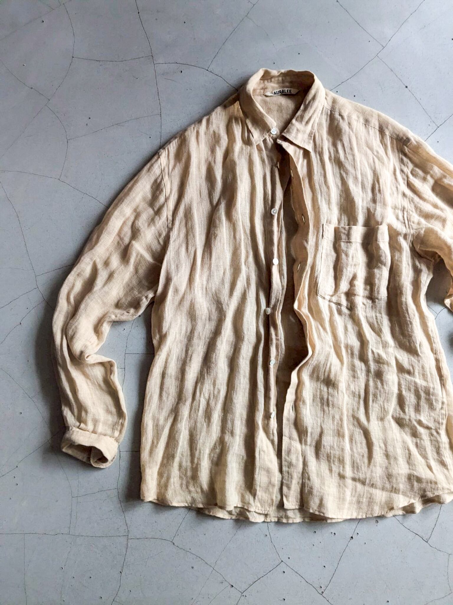肌触り100%のリネンシャツ。凸凹の表面の素材感も楽しめます。 肩幅:47cm 着丈:73cm 身幅:52cm 袖丈:56cm ※ 15,000円以上のご購入で送料無料 ※ お客様都合による注文のキャンセル、返品、サイズ交換はできませんのでご了承ください ※ 汚れや状態などあくまでUSED商品であることをご理解の上お求めください