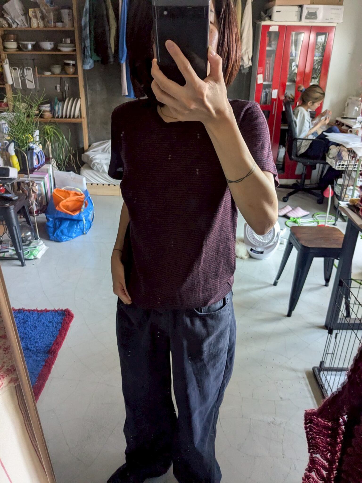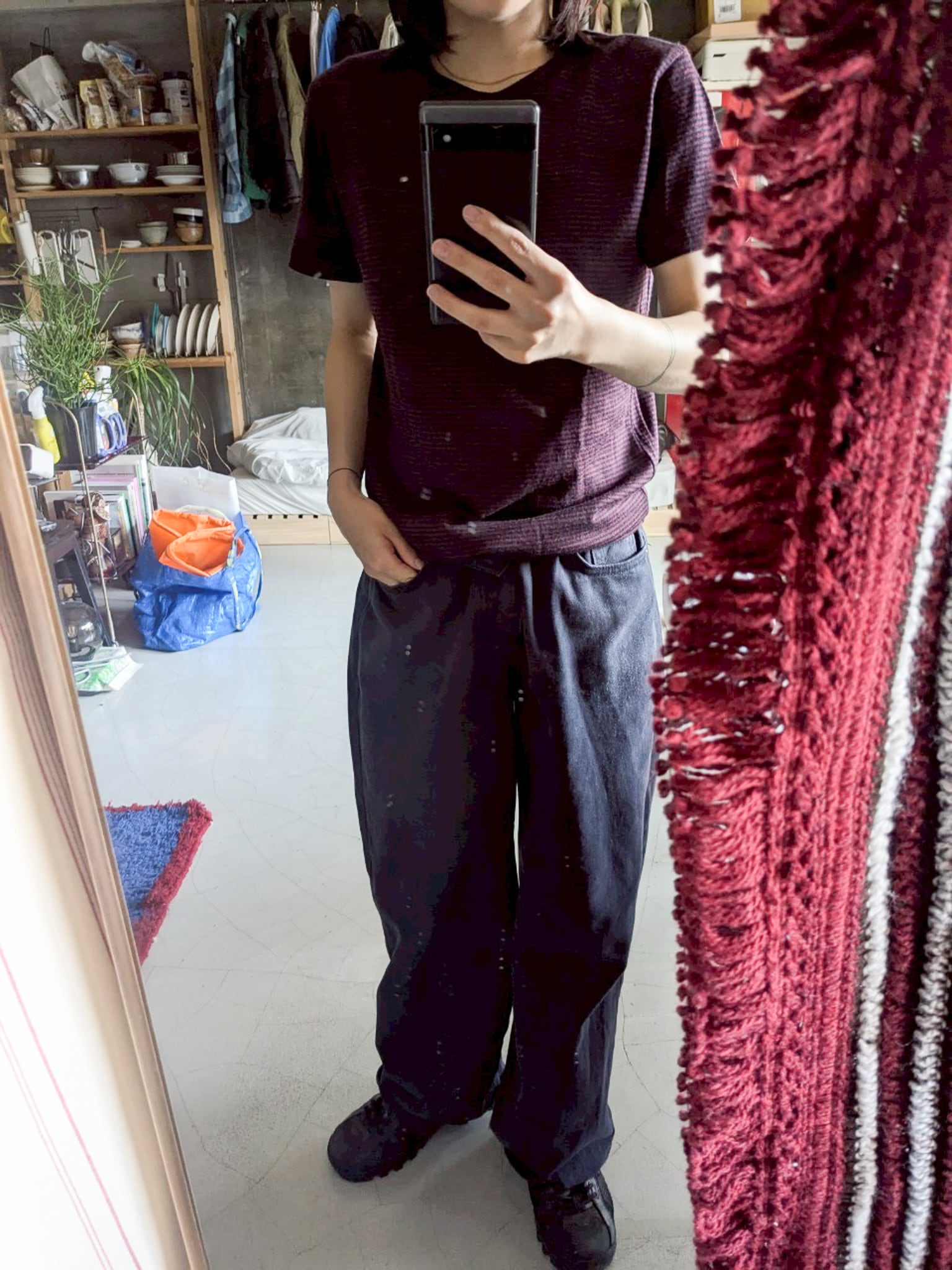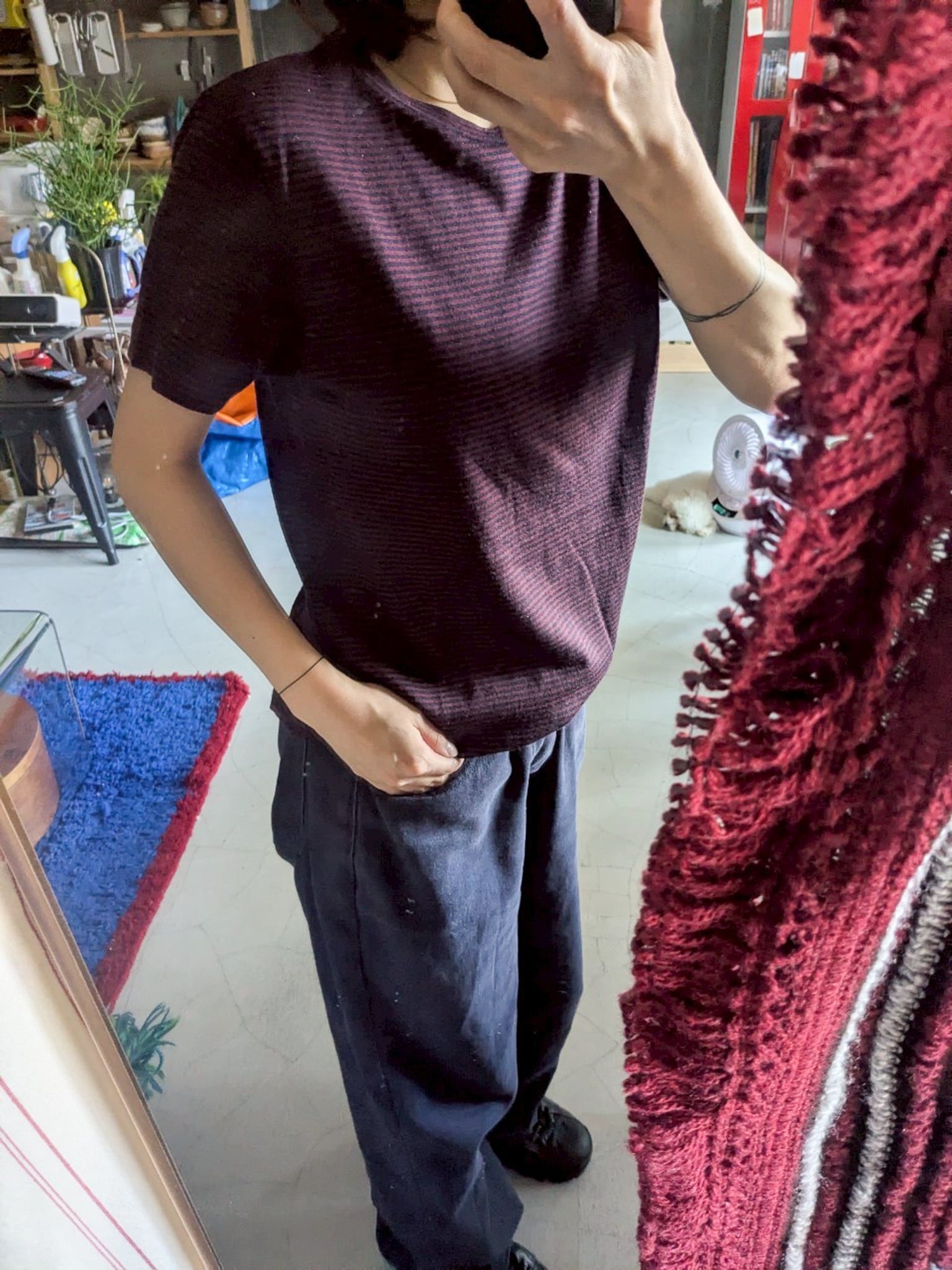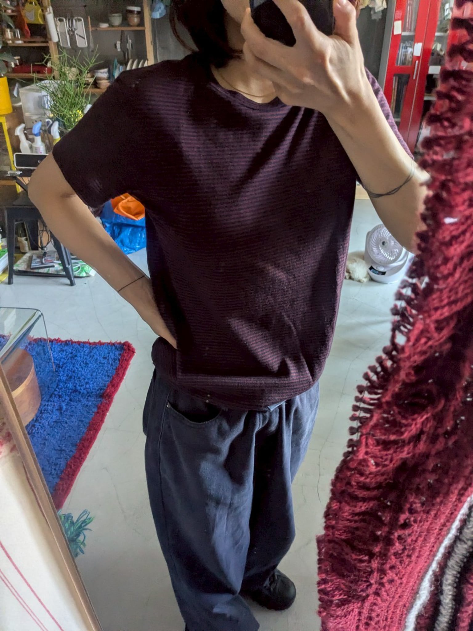 ネイビーとバーガンディのボーダー。
