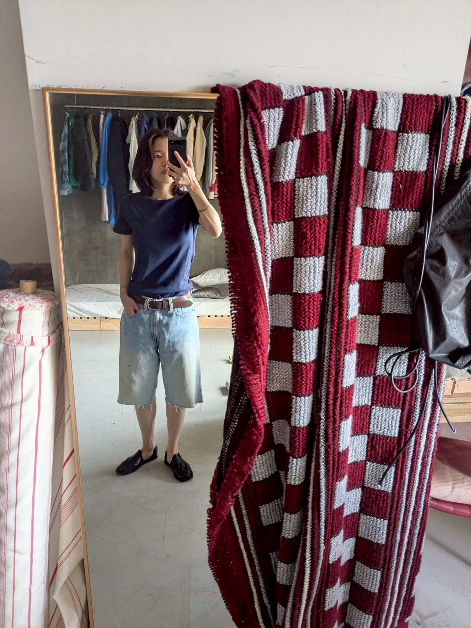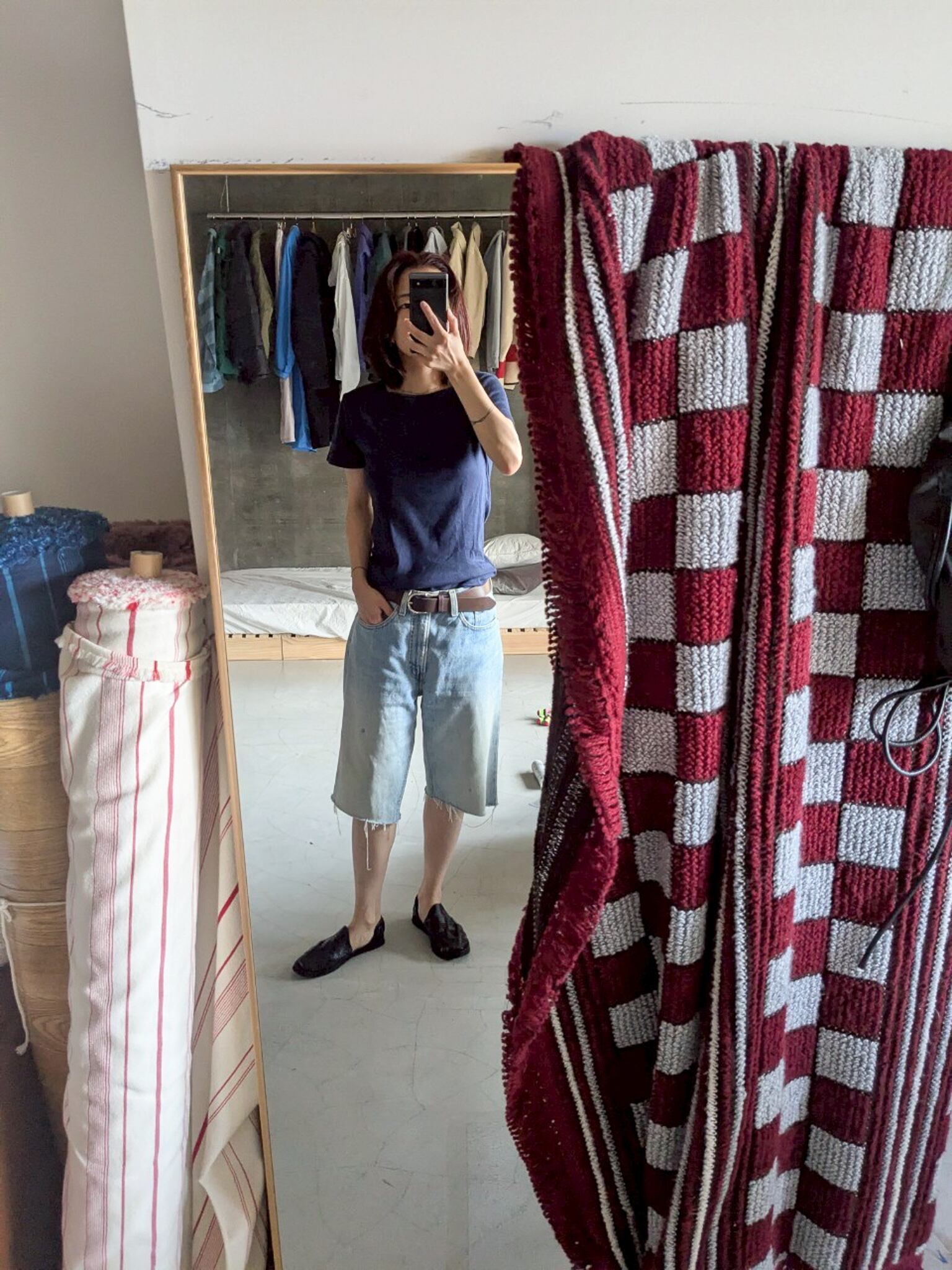 フラットサンダルやスニーカーと合わせてカジュアルに