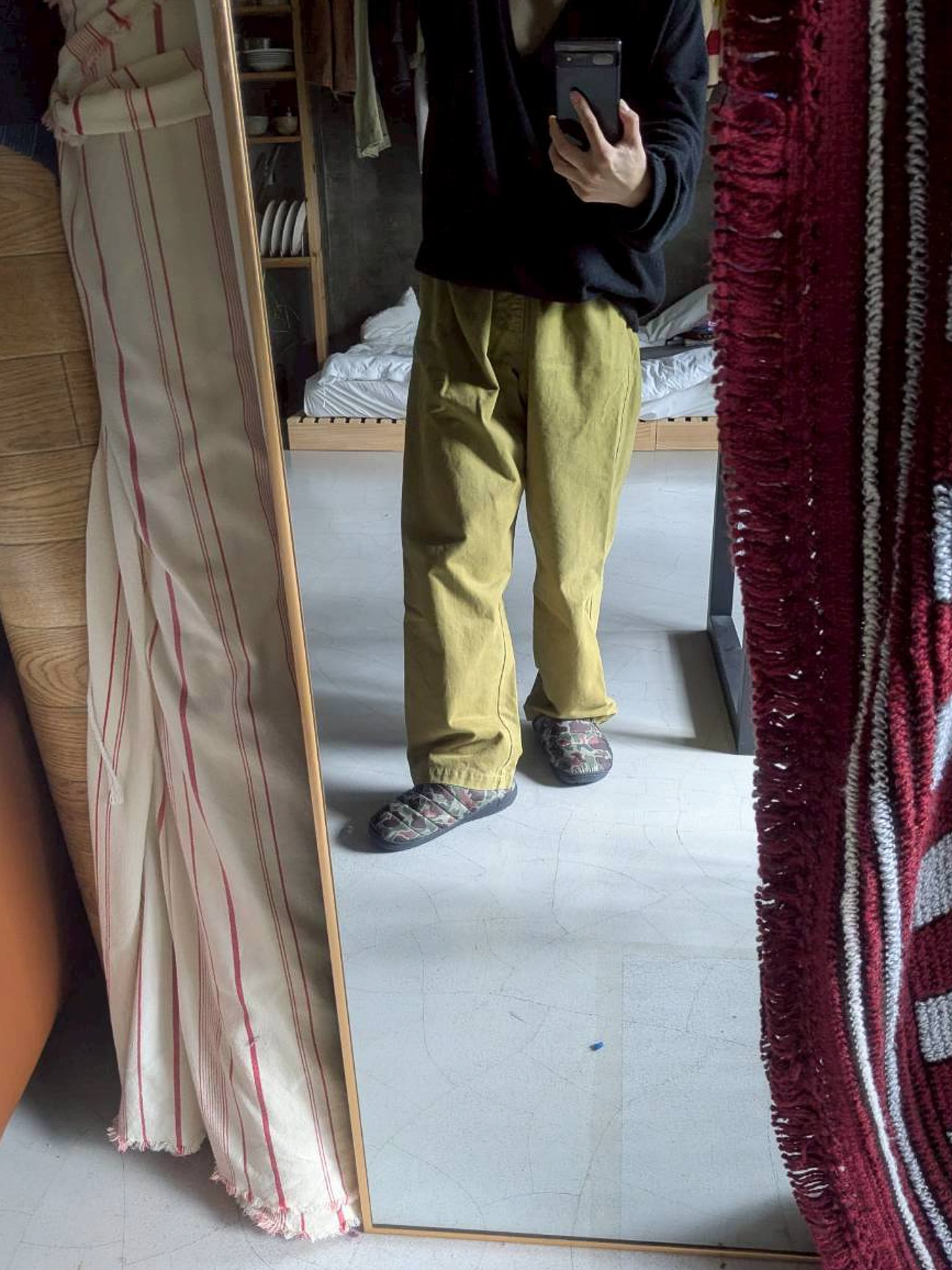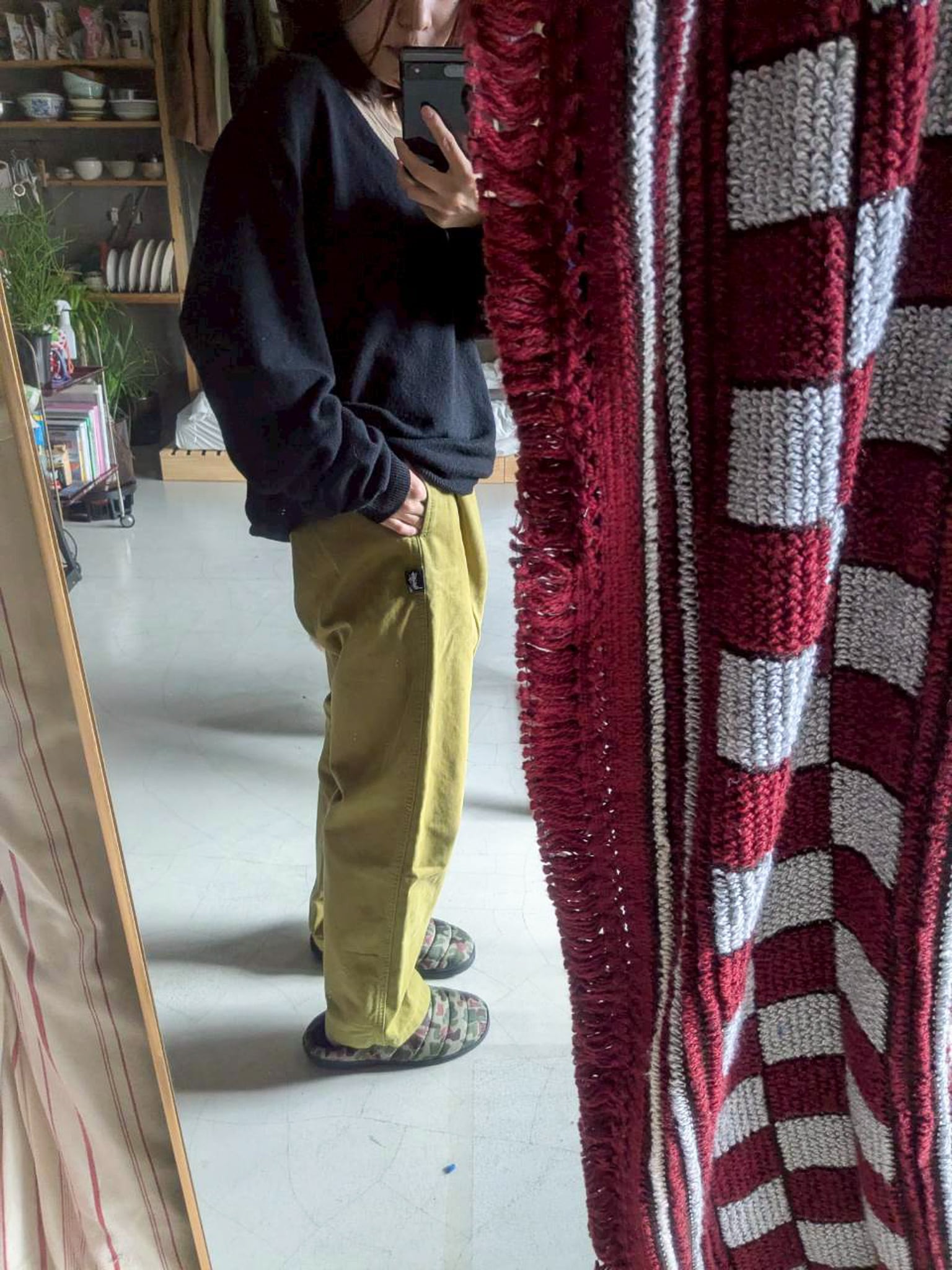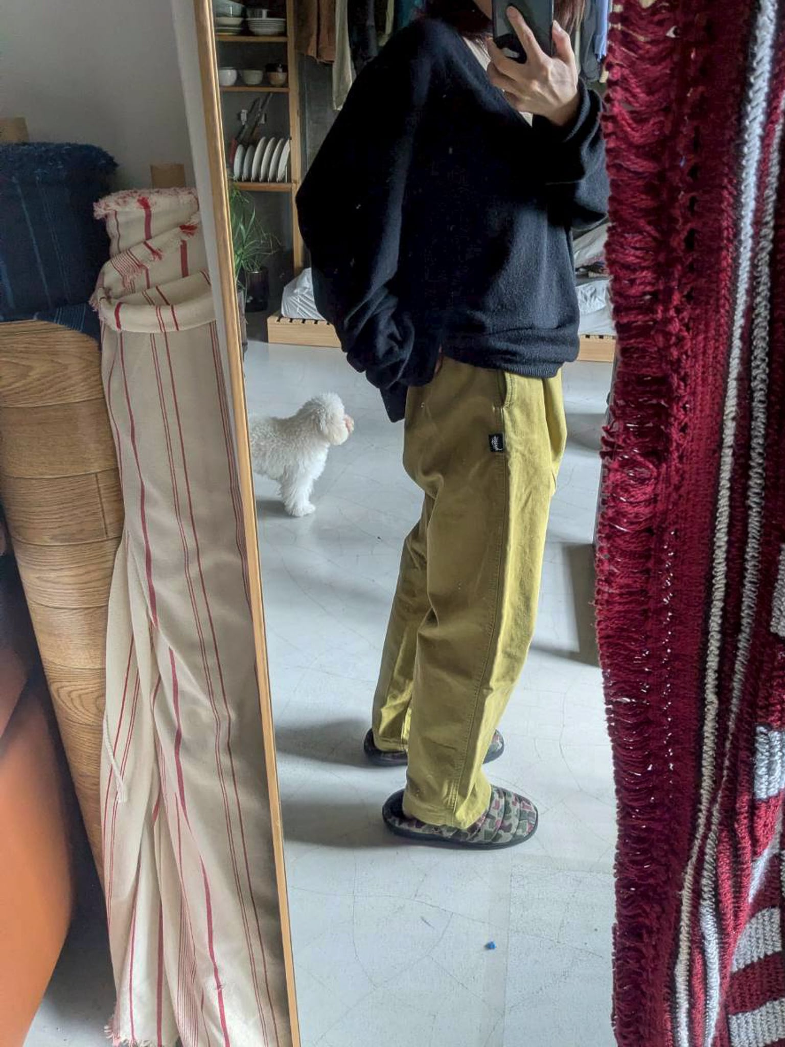 ブラッシュド(起毛)加工を施したコットンツイル素材で作られているので、柔らかく馴染んだ風合いです。とてもいい色!