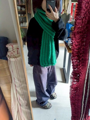 オーバーサイズのニットと合わせてアウター無しスタイル、かわいいです