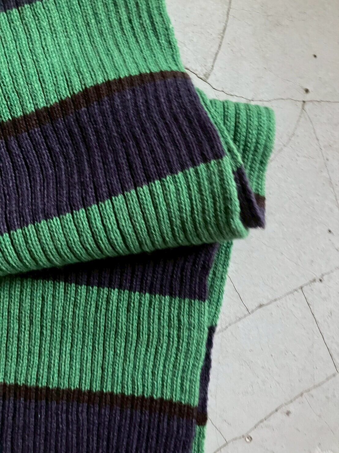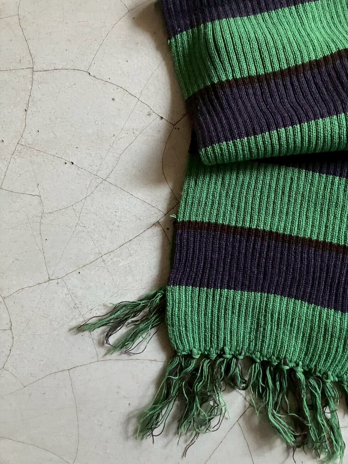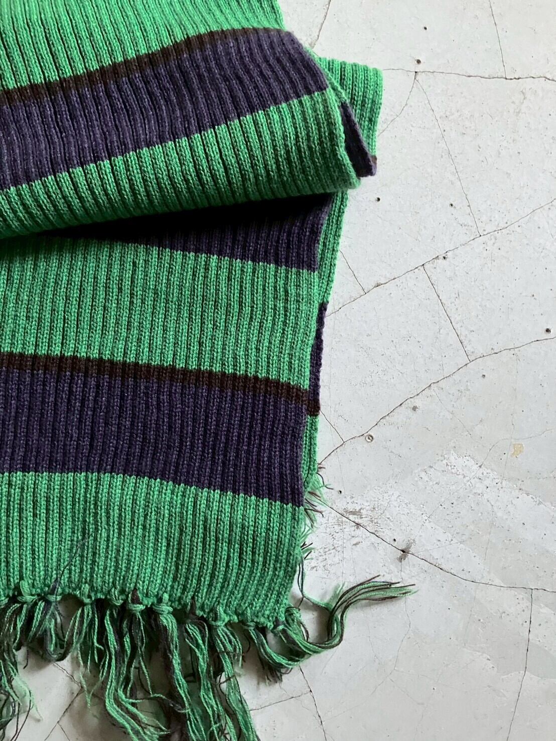 グリーンにネイビーのボーダーマフラー 表記はないですが、おそらくアクリル100% 肌触り良く、伸縮性があり暖かいです H180cm×W20cm フリンジ:約H12cm×W20cm ※ 15,000円以上のご購入で送料無料 ※ お客様都合による注文のキャンセル、返品、サイズ交換はできませんのでご了承ください