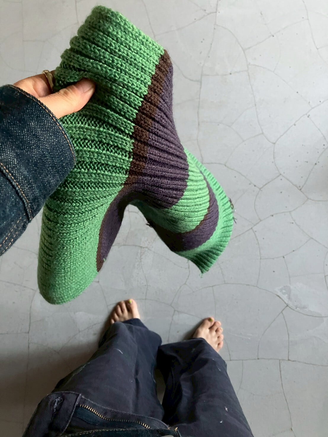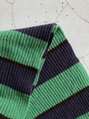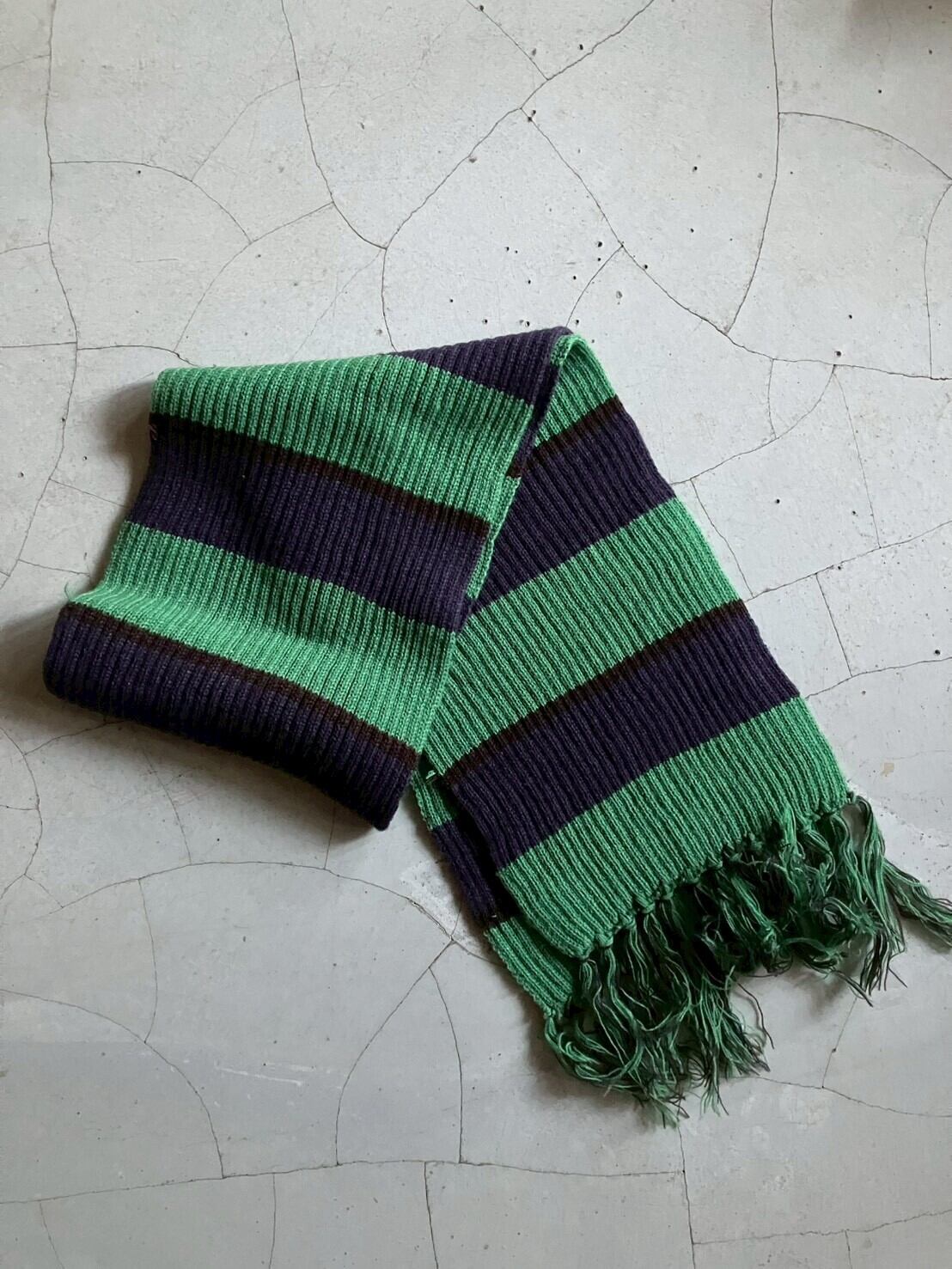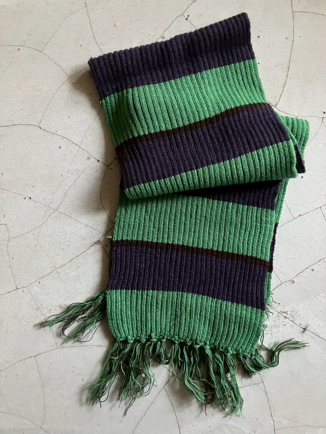 グリーンにネイビーのボーダーマフラー 表記はないですが、おそらくアクリル100% 肌触り良く、伸縮性があり暖かいです H180cm×W20cm フリンジ:約H12cm×W20cm ※ 15,000円以上のご購入で送料無料 ※ お客様都合による注文のキャンセル、返品、サイズ交換はできませんのでご了承ください