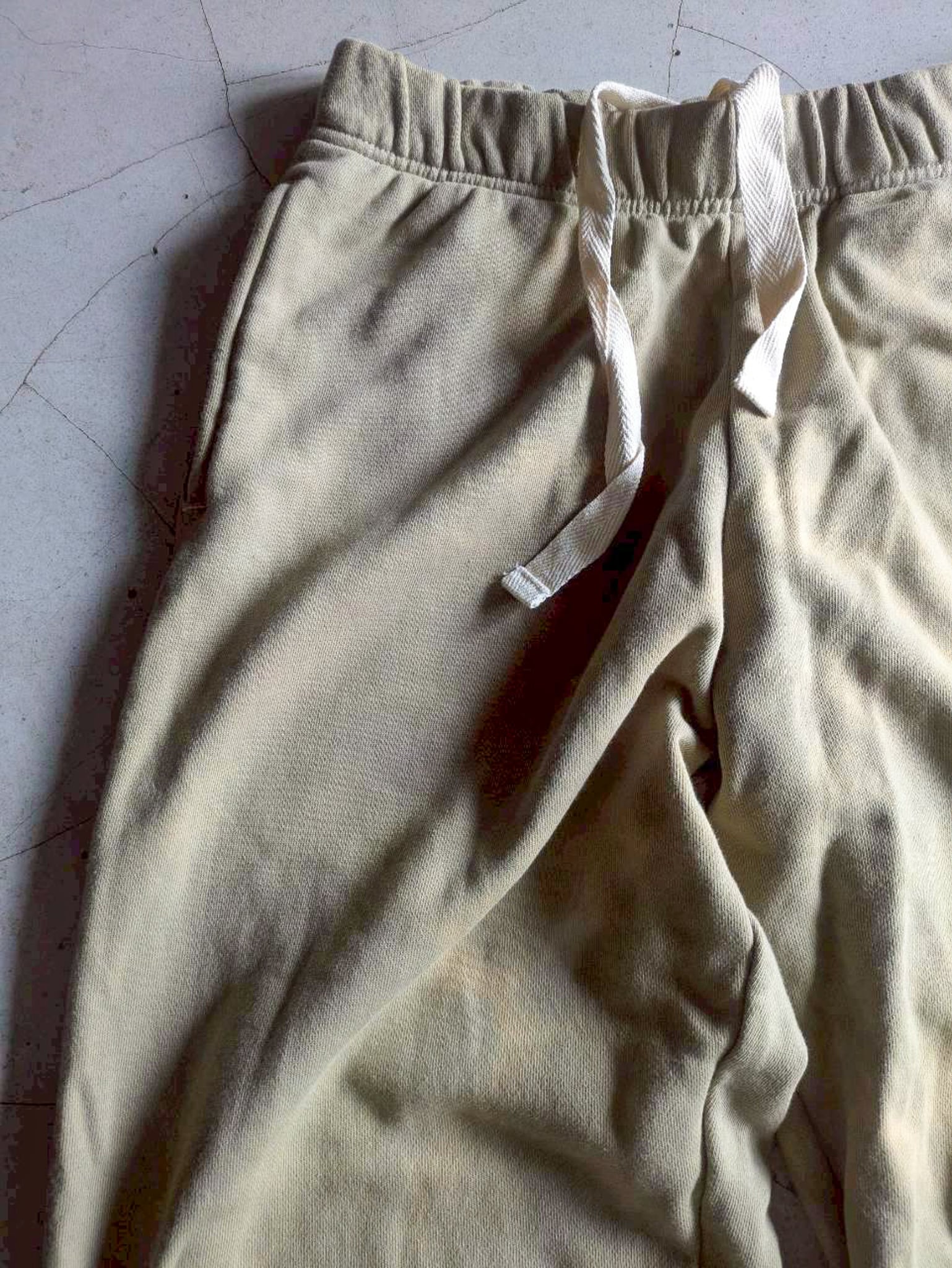 オリジナルの配合で染めたDYEスウェットパンツ 大地を連想させるカラー 左太腿位置には特注のオリジナルタグが付いています。 絶妙な配色です。 160cm M ・裏パイル ・綿100% ・両サイドにポケット付 ・ウエスト;綾テープ ウエスト36 ヒップ54 股上31 股下102 154cm ※ 15,000円以上のご購入で送料無料 ※ お客様都合による注文のキャンセル、返品、サイズ交換はできませんのでご了承ください ※ 汚れや状態などあくまでUSED商品であることをご理解の上お求めください