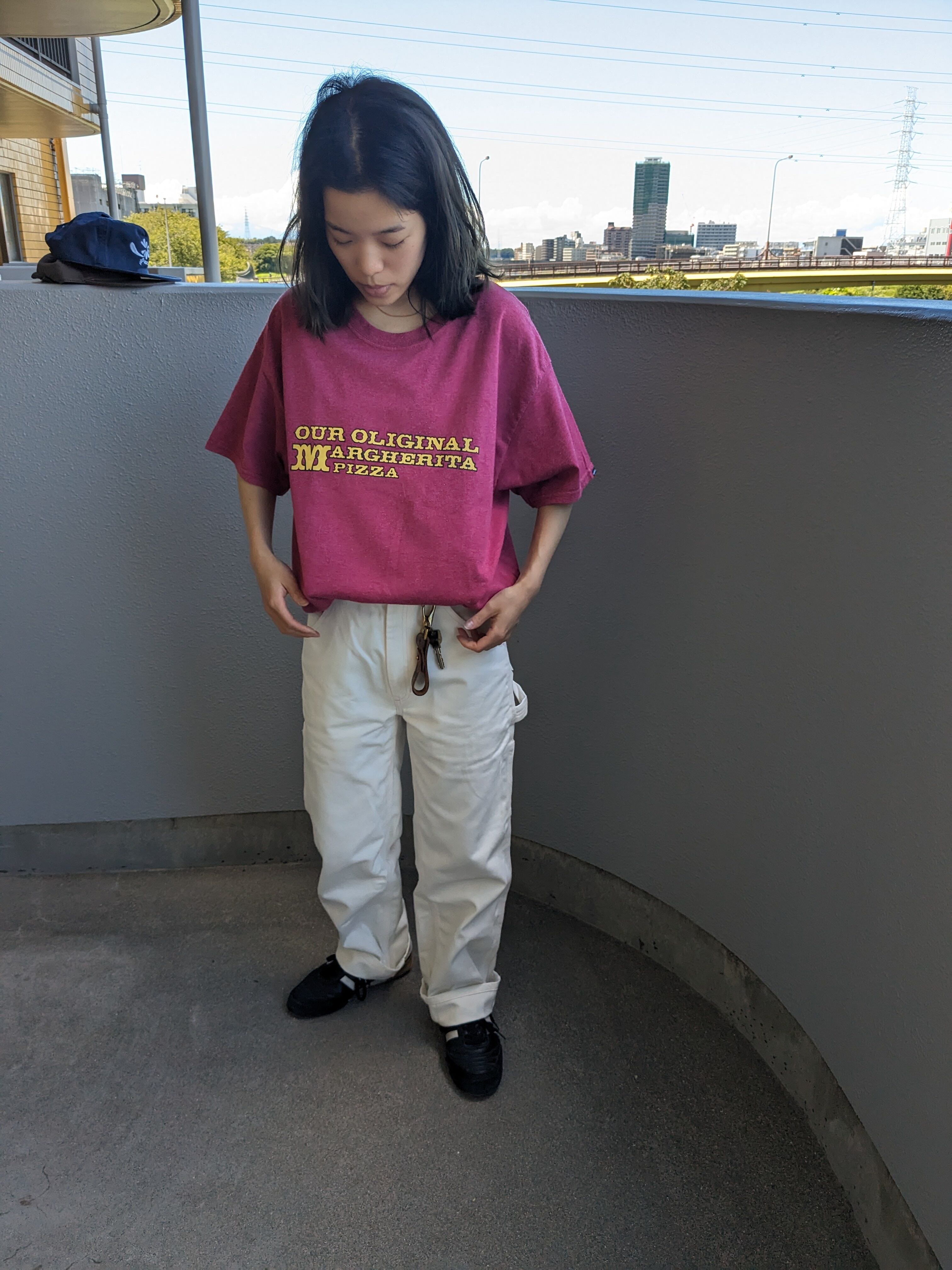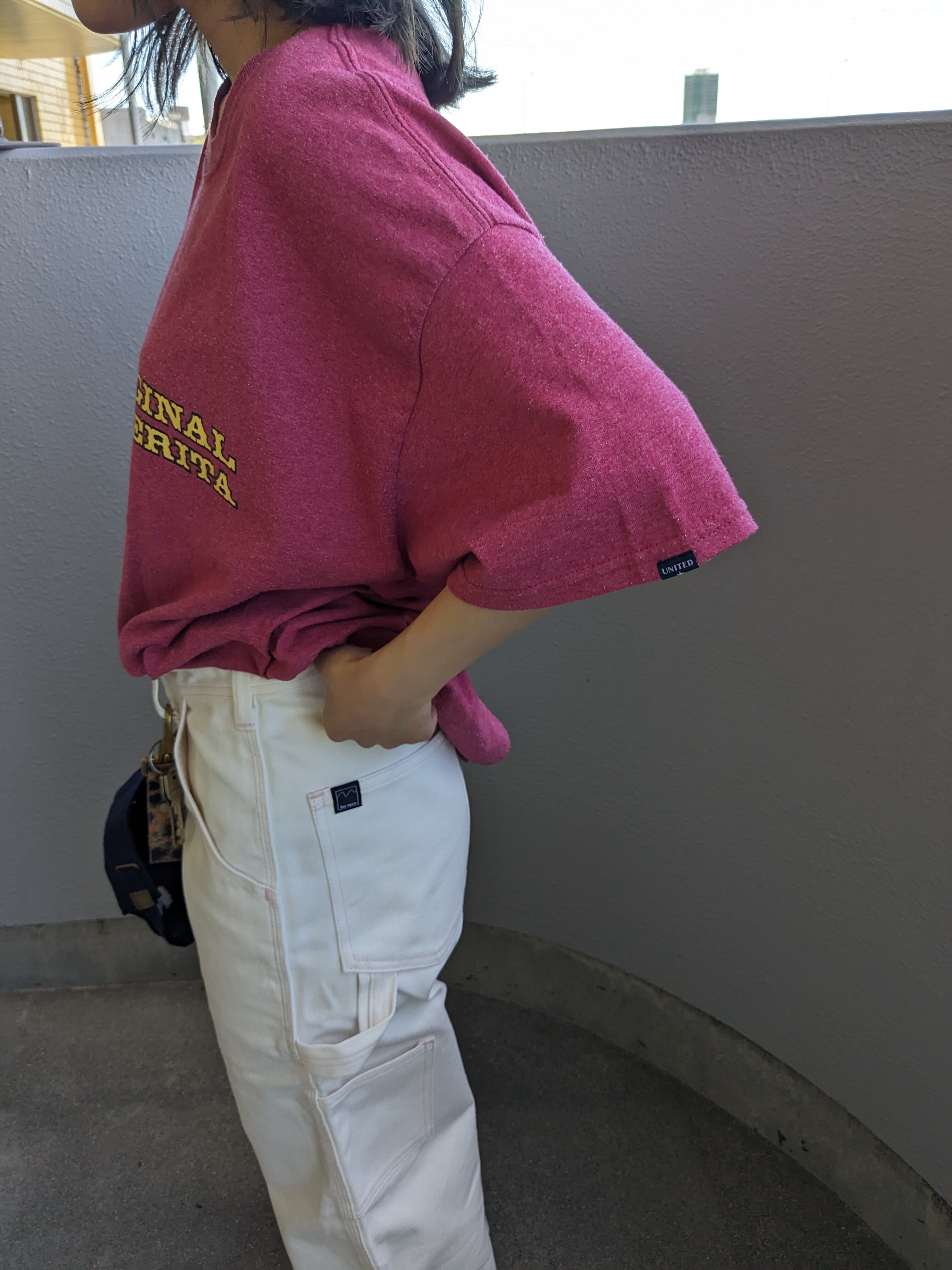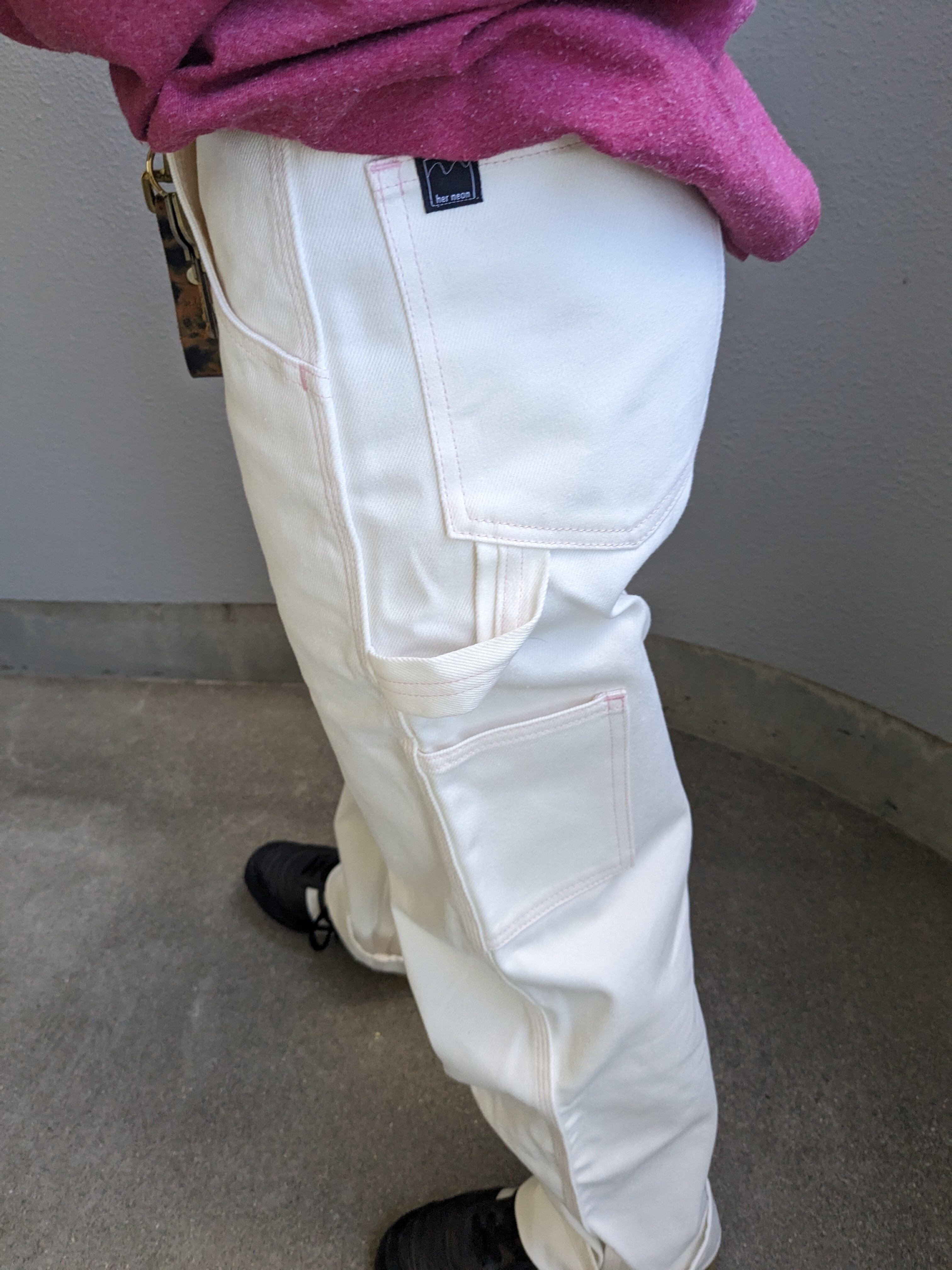ハーネオンオリジナルパターンのペインターパンツ サンプルでカーキとホワイトの2カラーを製作したものです ホワイトのボディにピンクのステッチがアクセント 肉厚な生地を使っており、かなりタフなペインターパンツです 履き込んで自分のものに育ててください ■サイズ ウエスト34 股上30 股下69