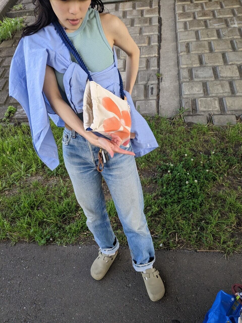 淡いピンクはチノパンツ、デニムとの相性がいいです