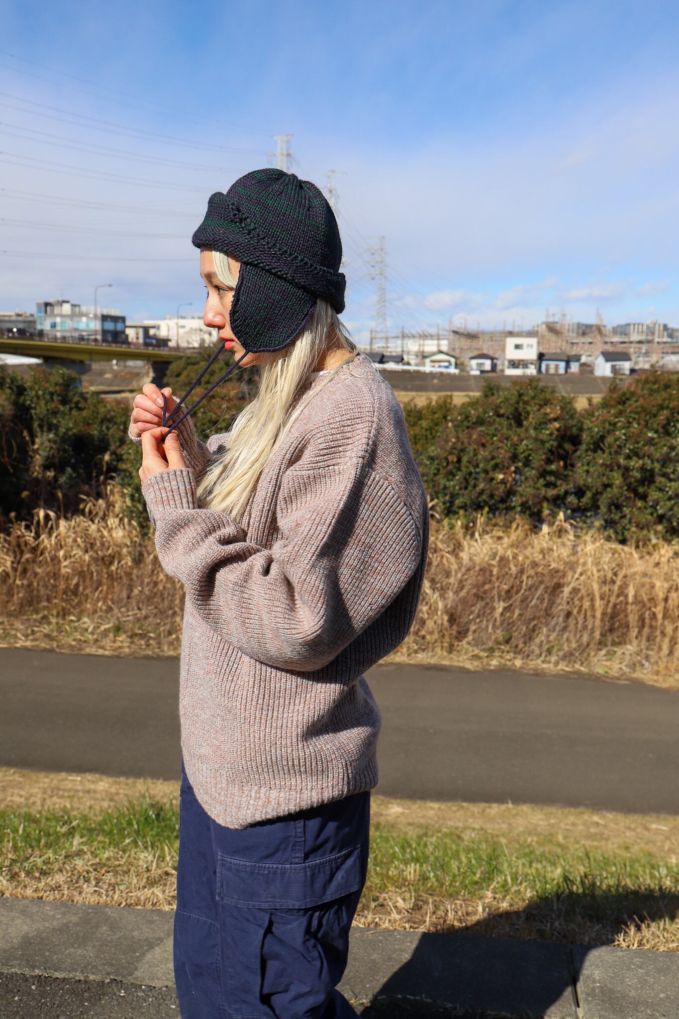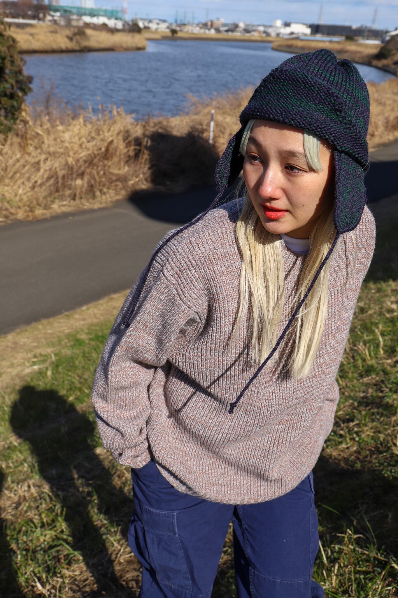 高品質のブリティッシュウールを使用したイヤーフラップ付きニットキャップ