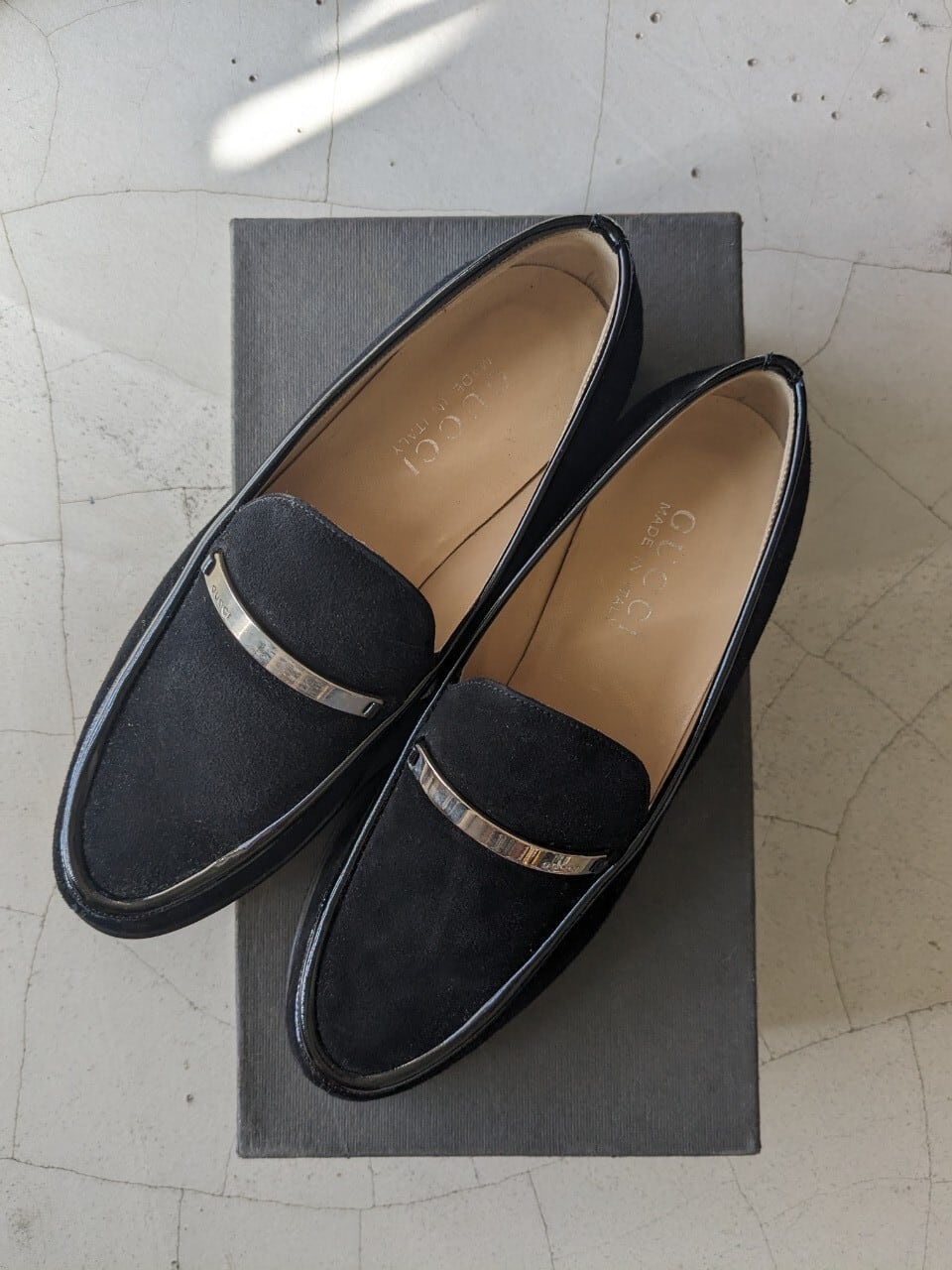 90年代のGUCCIのローファー 23.cm デザインがスタイリッシュで素敵です ずっと箱に入れて保管していたため、汚れ傷なしの美品 これからの時期、スウェットパンツのハズしなど いいバランスで使えそうです