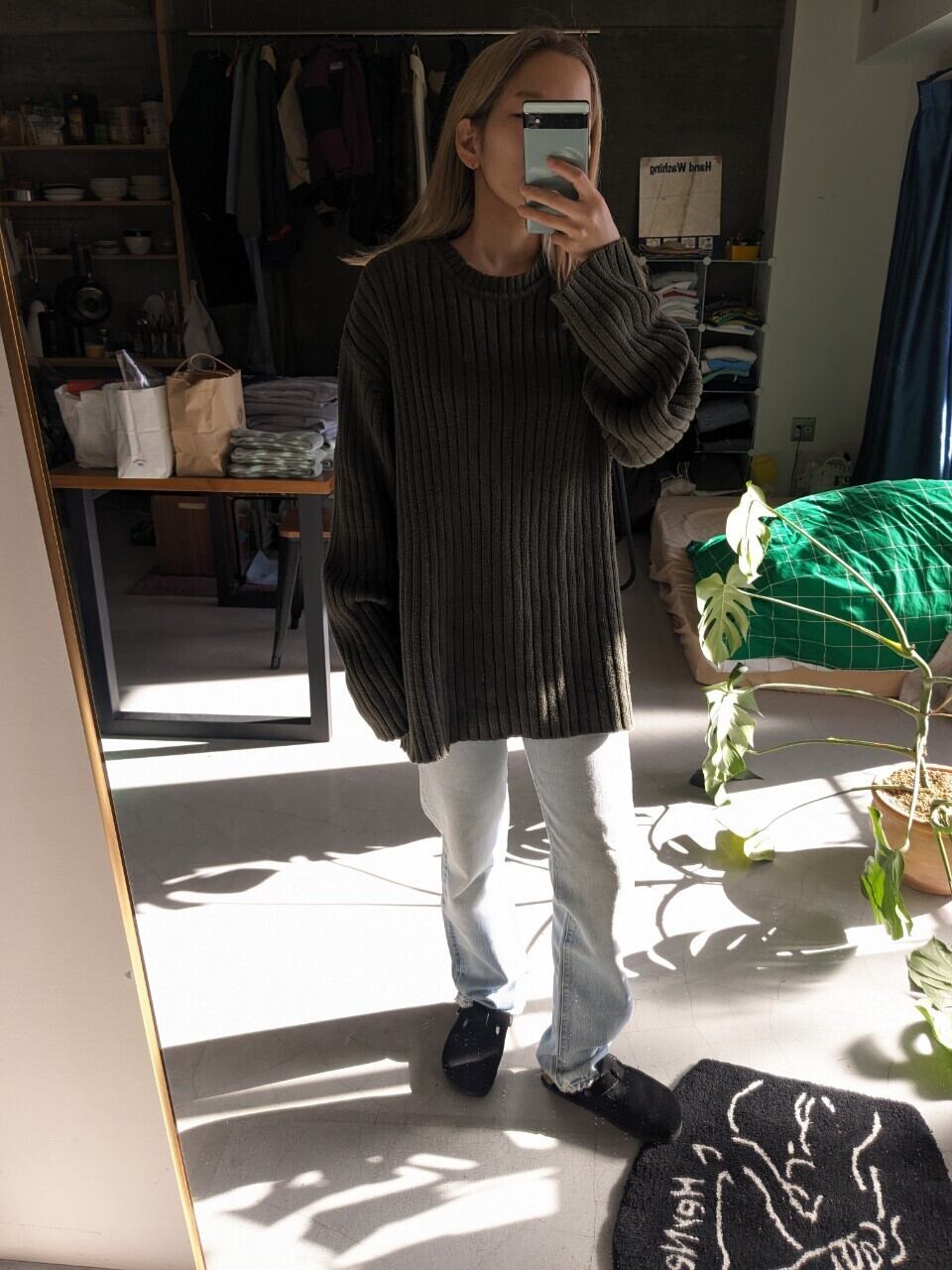 渋めのカーキ配色、リブ入りなところがGOODポイントです