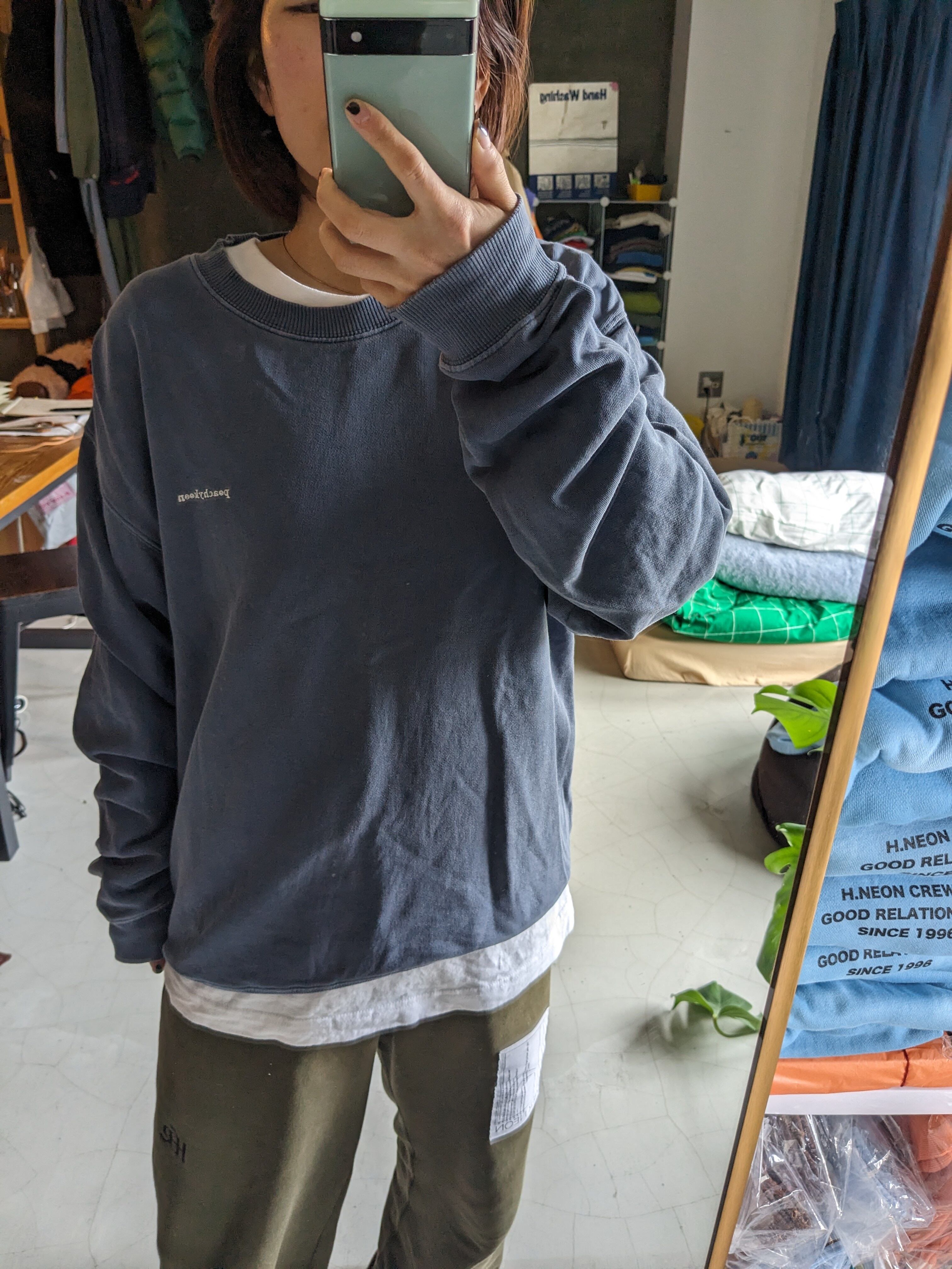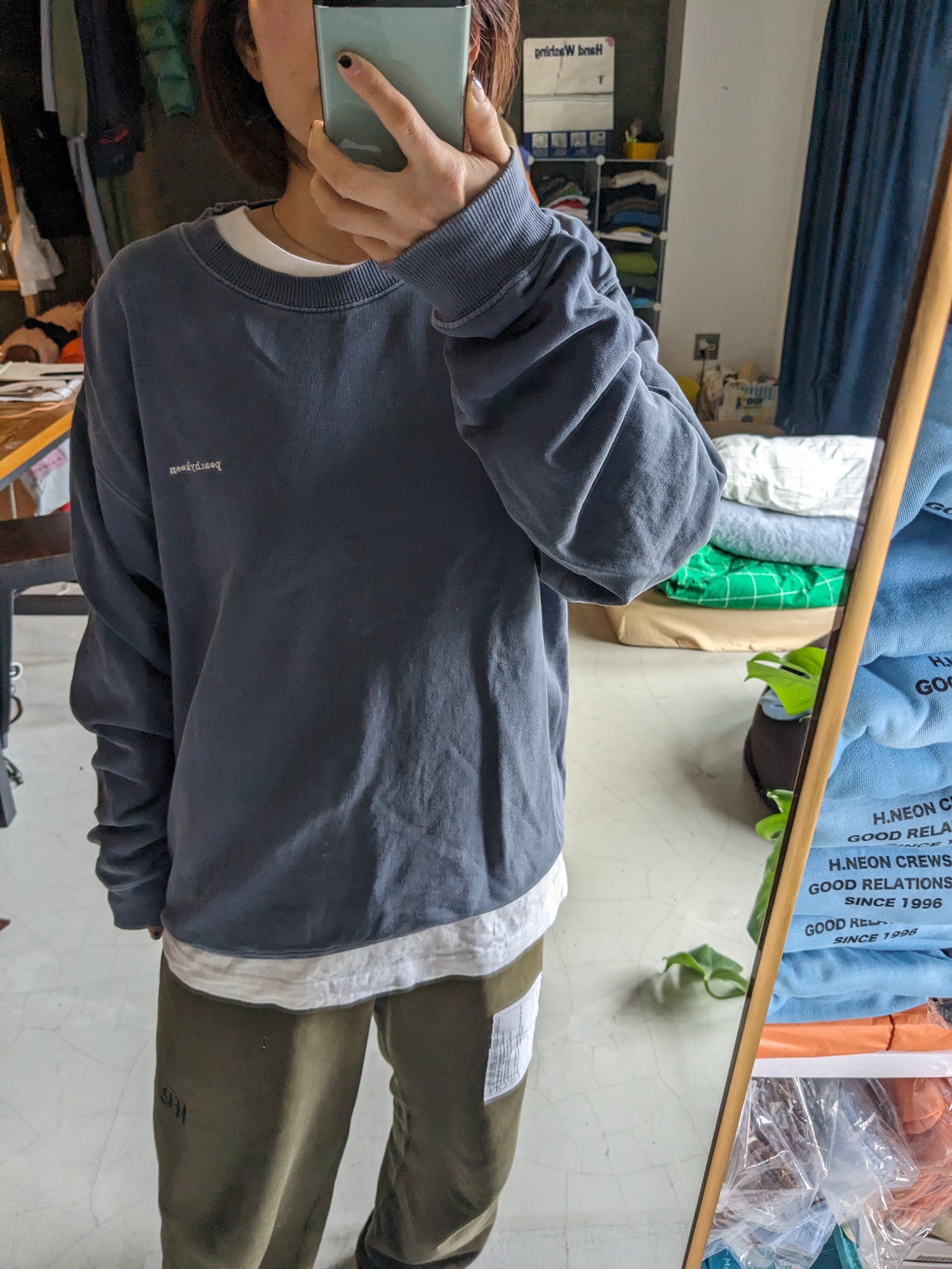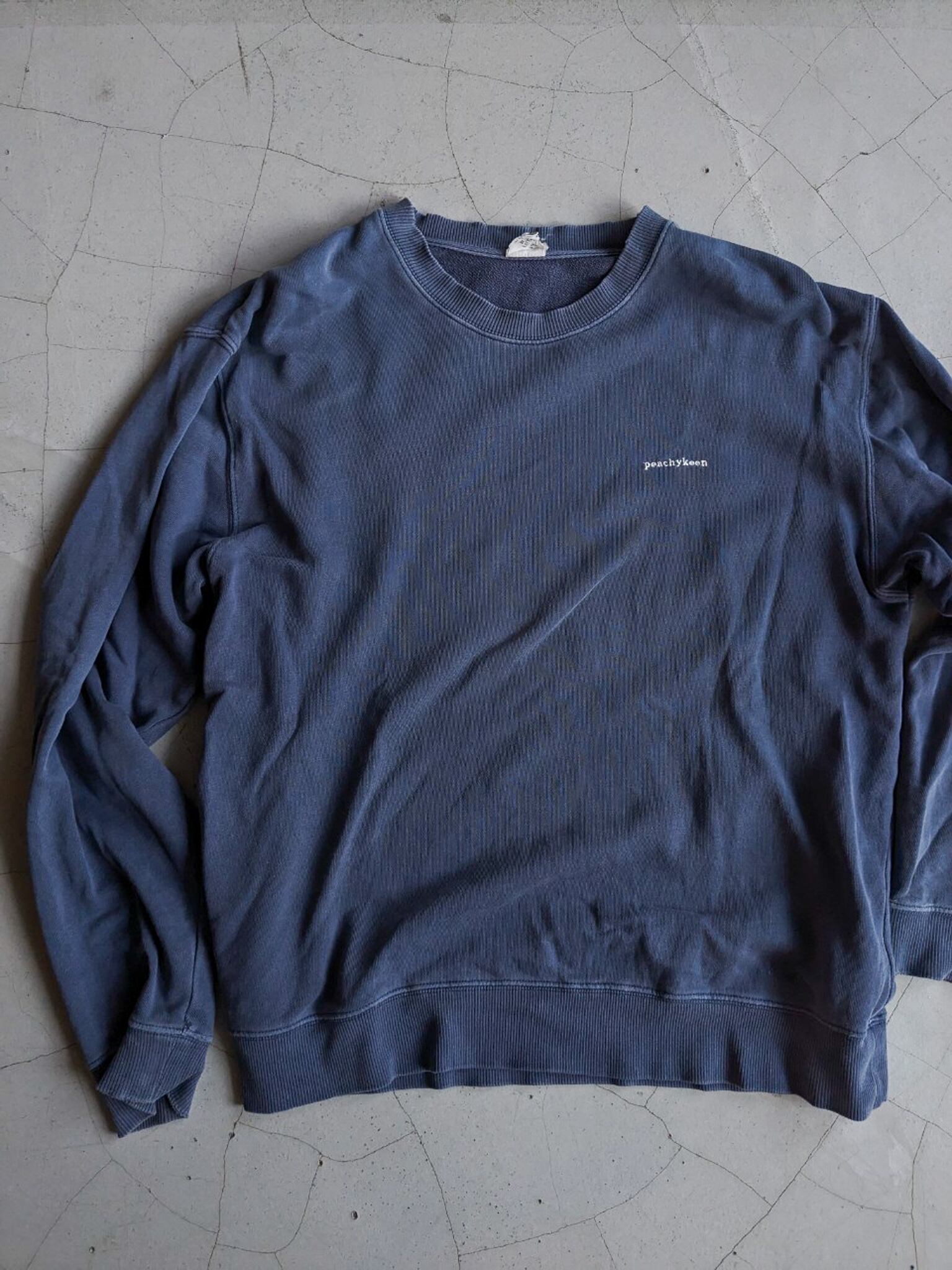 peachykeen時代のおそらく最初?のスウェットです。大事に育ててきました。 色褪せ、いい感じにヴィンテージ感でてます。 生地もやわらかいです。 サイズM 着丈 65 身幅 56 肩幅 51