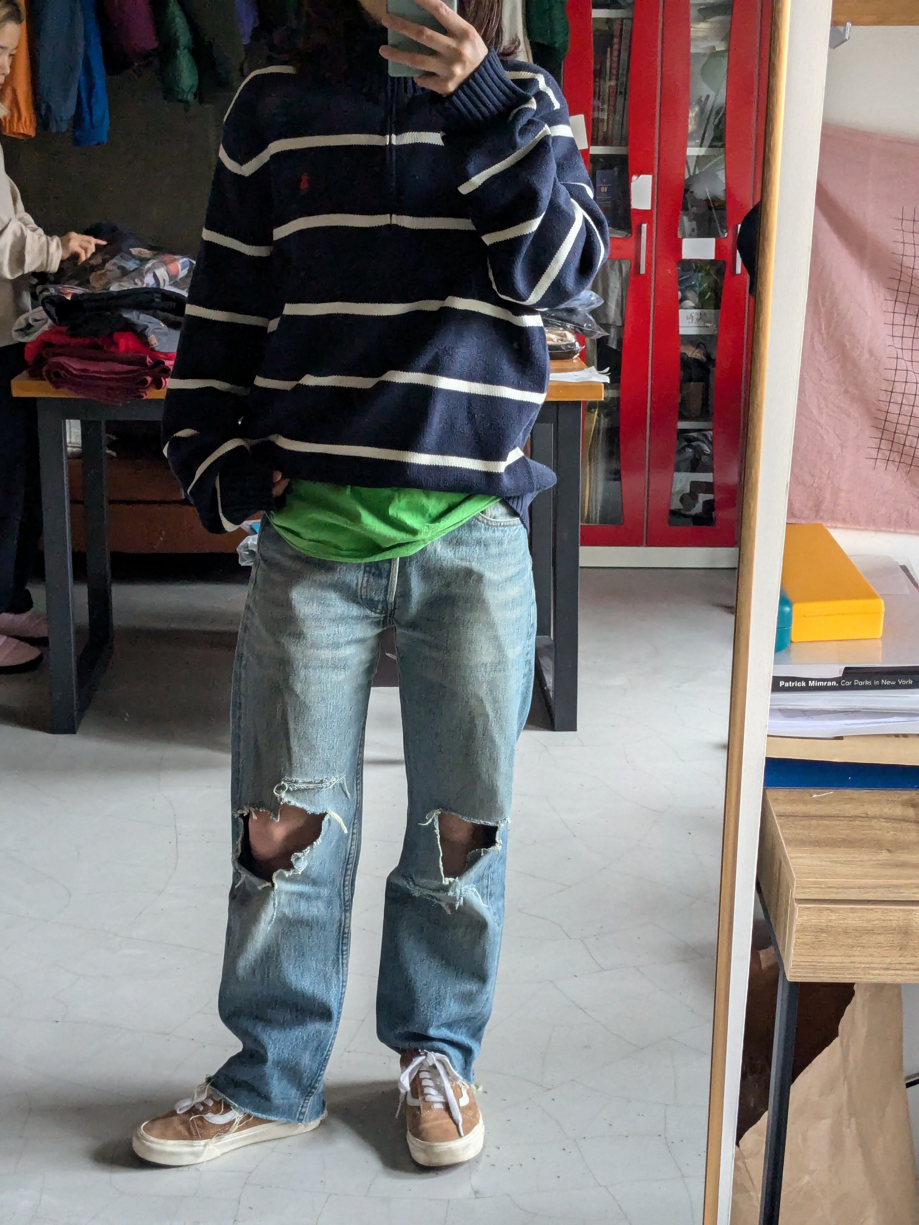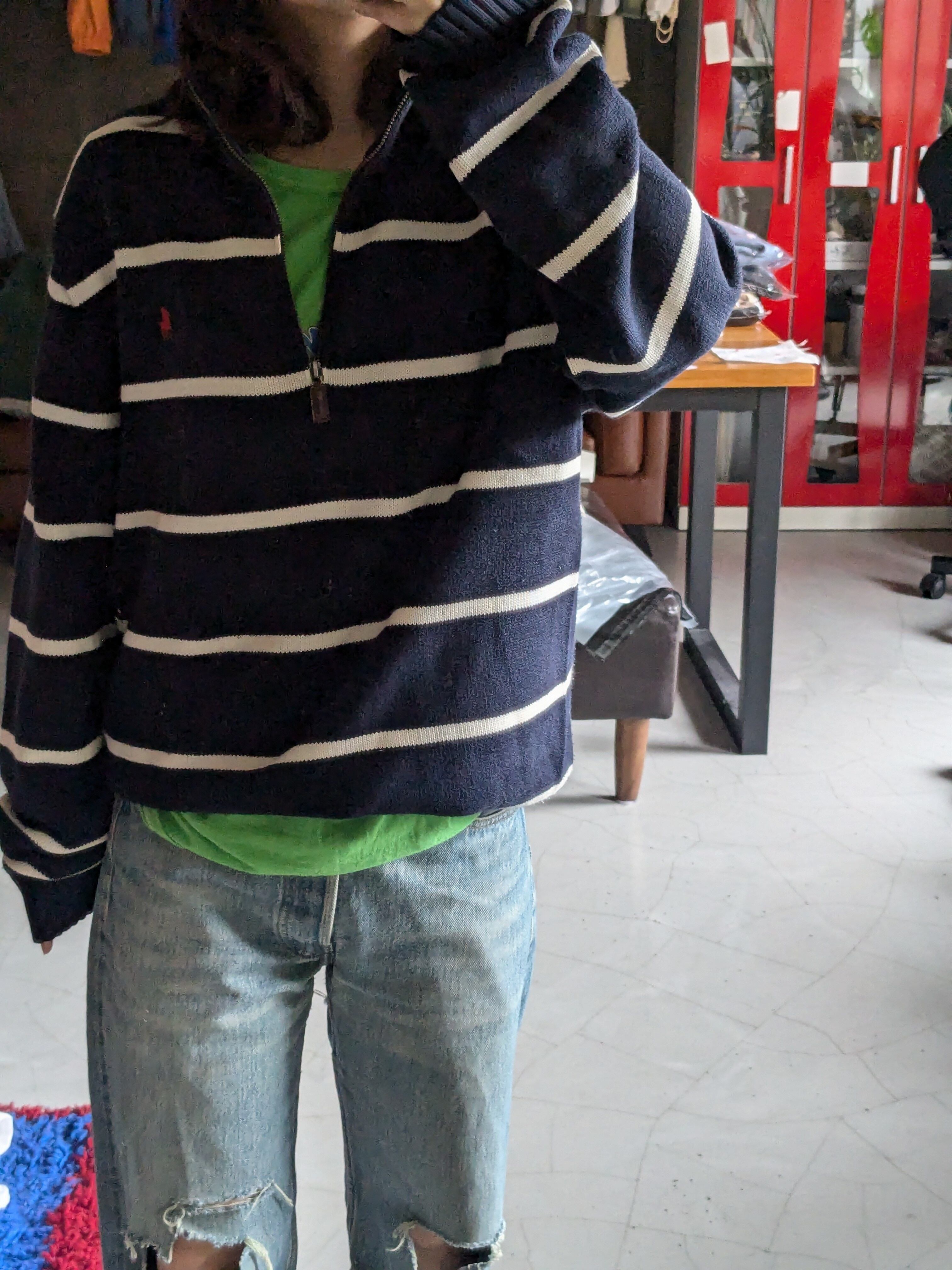 クタクタのデニムと相性抜群 コットン100で肌触り良し 長い間着用してましたが手放します M 身幅:52cm 肩幅:44cm 着丈:65cm