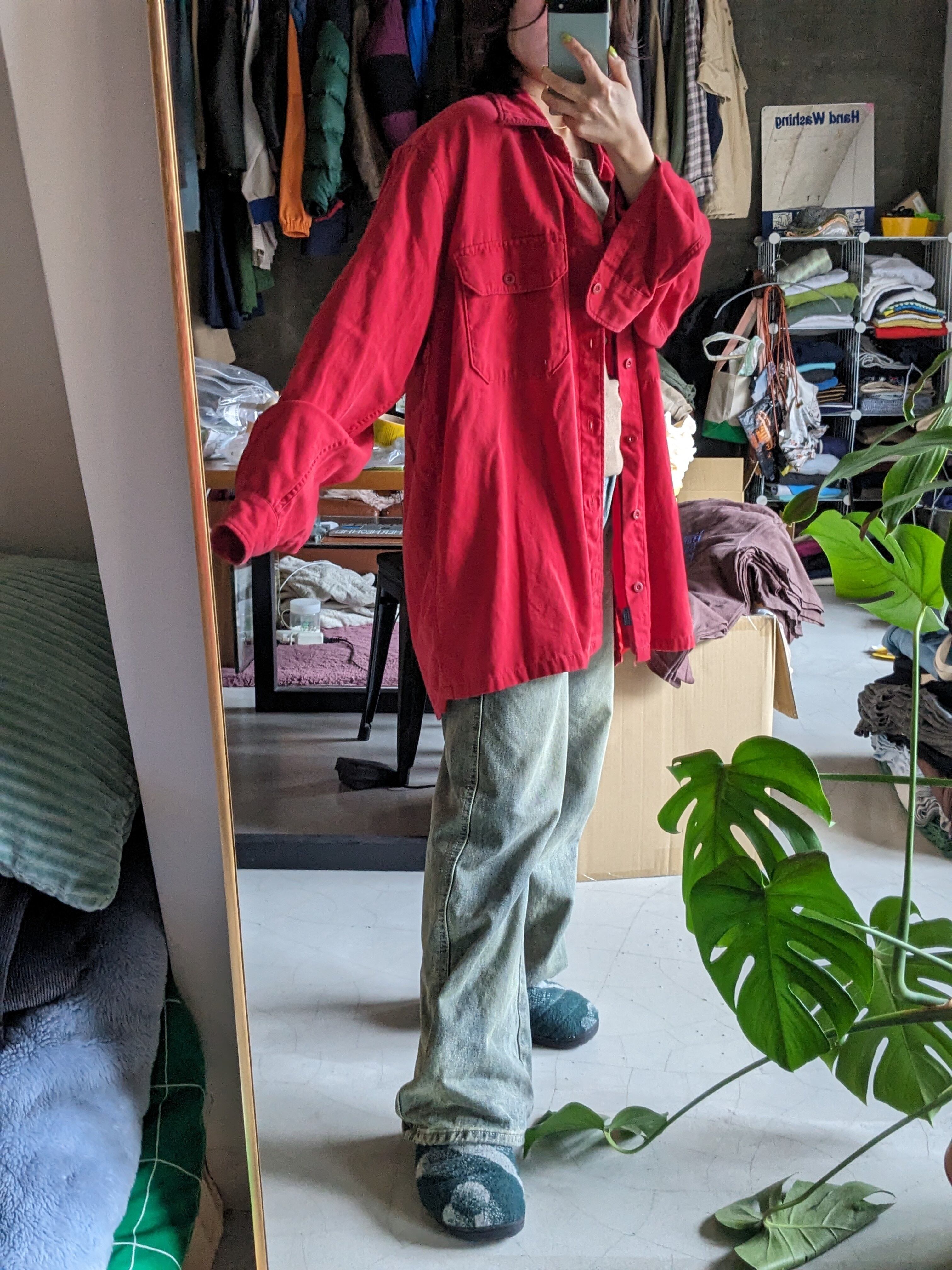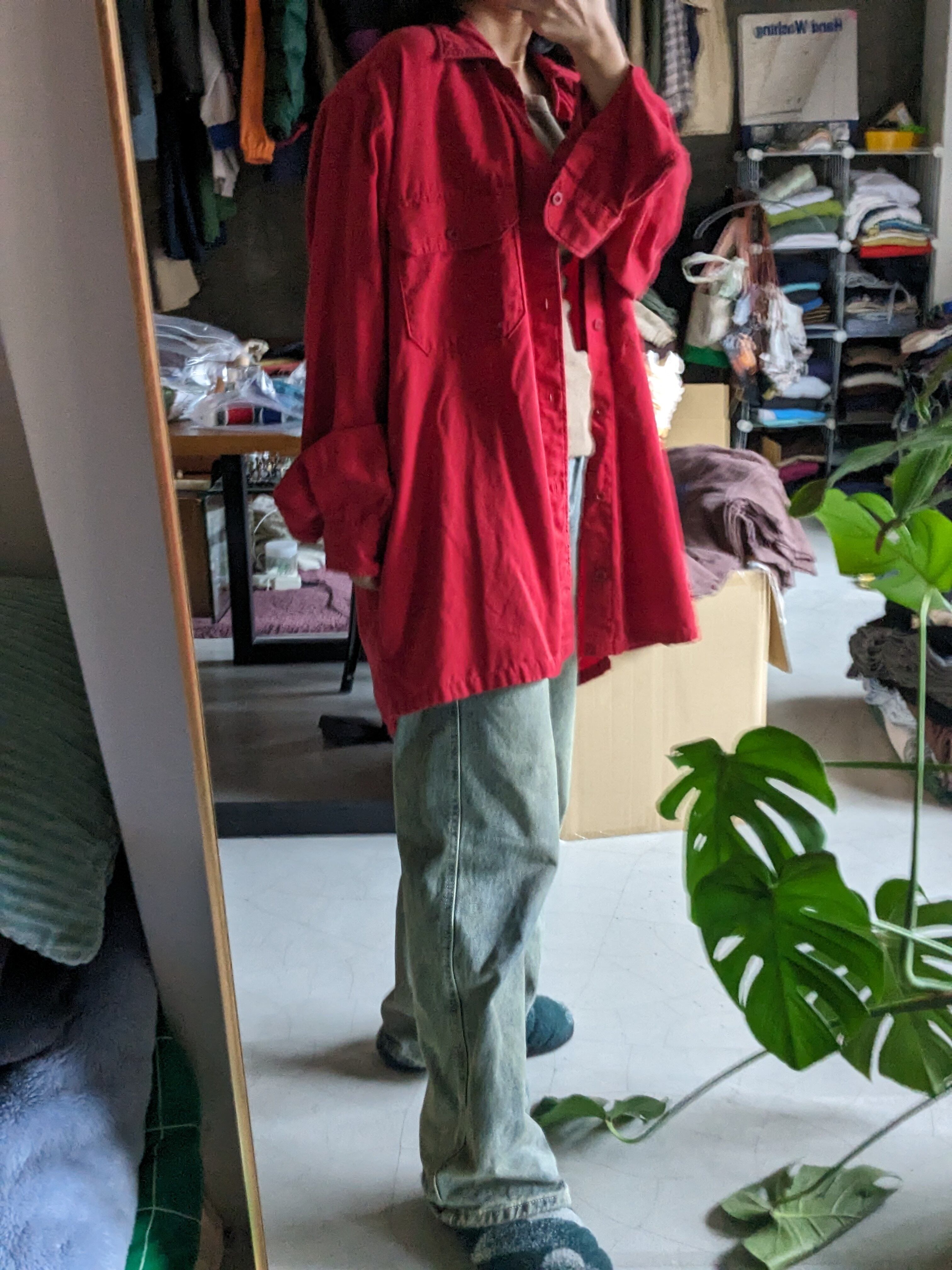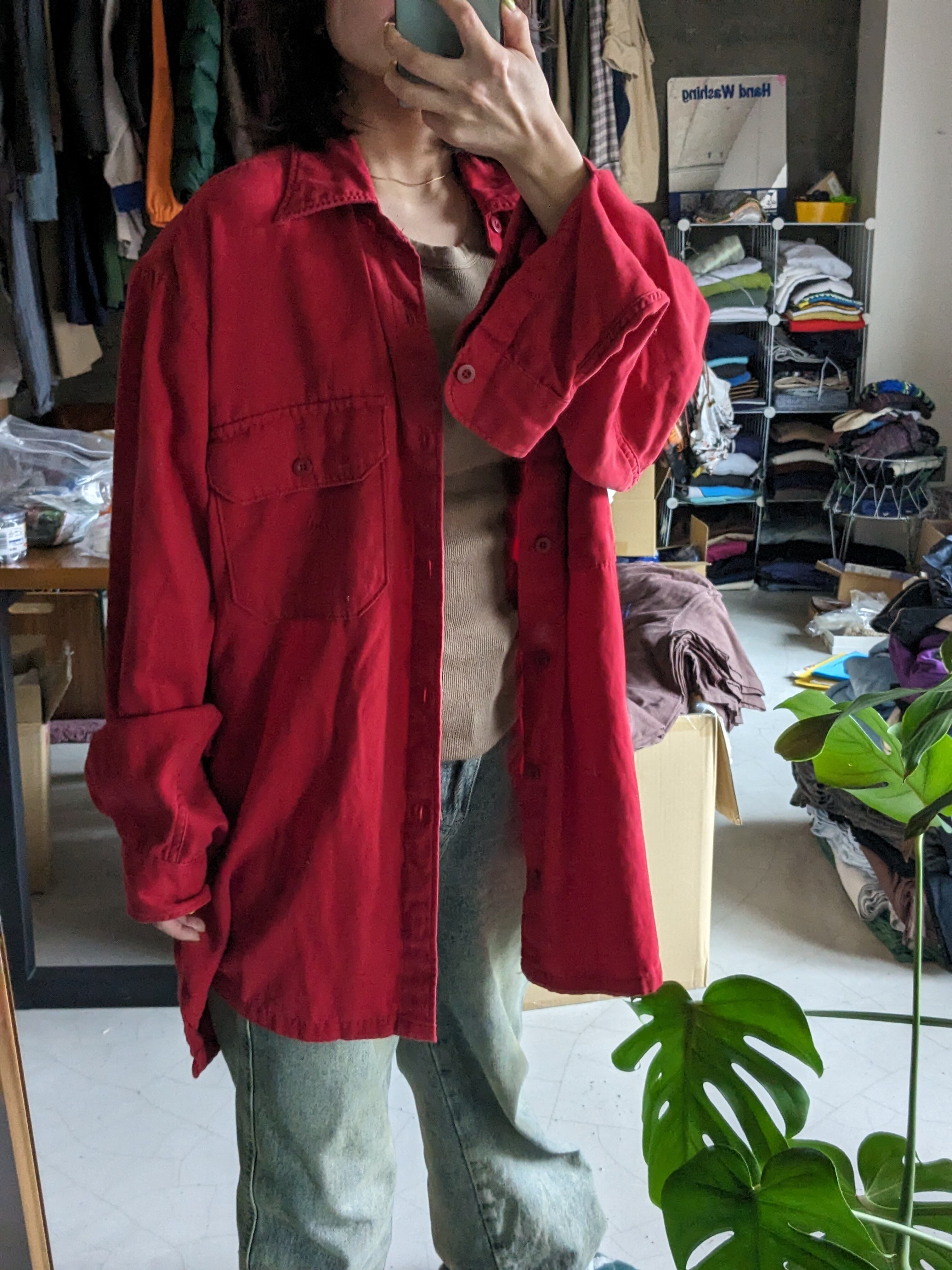 NAUTICA RED SHIRTS 色味、質感良し、状態もとてもいいです。 羽織としても一枚でも活躍します。コーデのアクセントに。 サイズ 着丈 78 身幅 58 肩幅 49 model : 153cm
