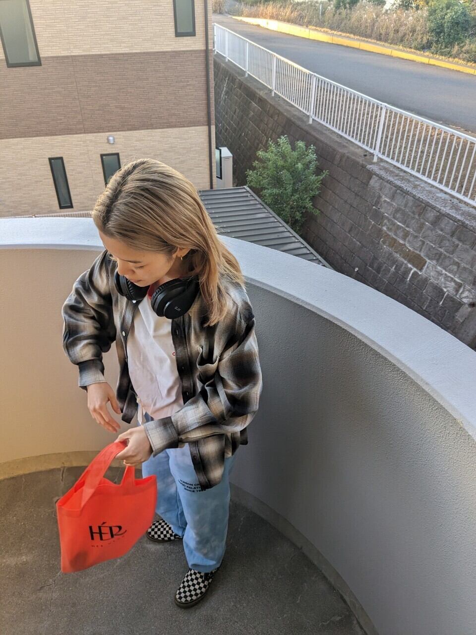 PHEENYのチェックシャツ