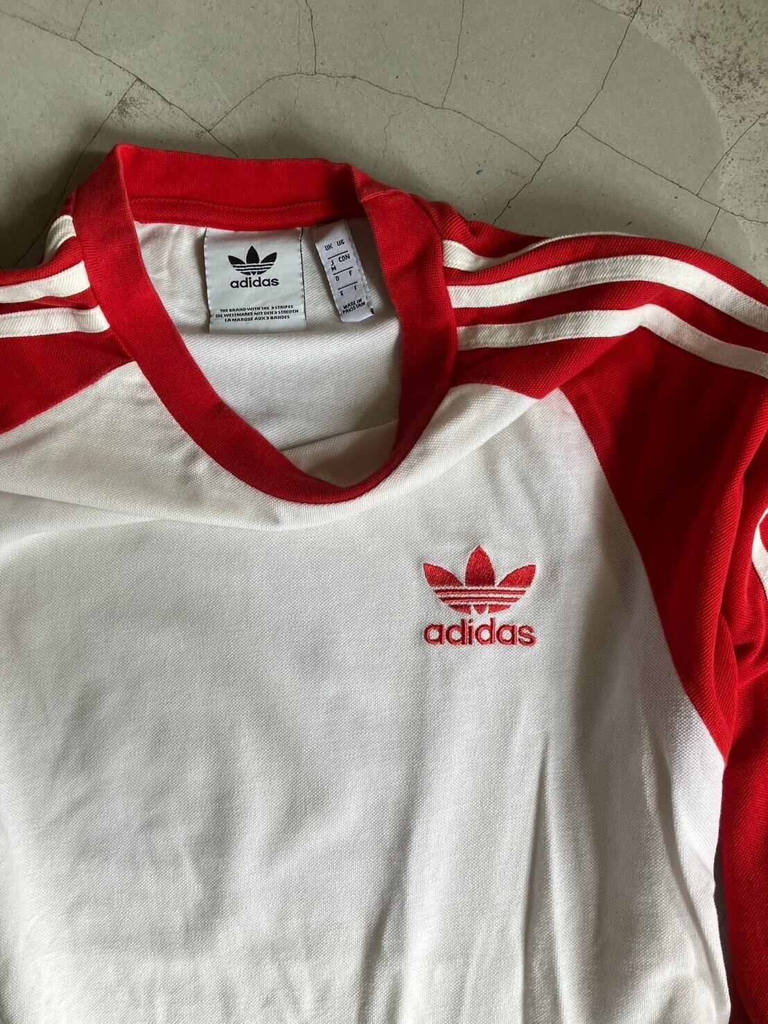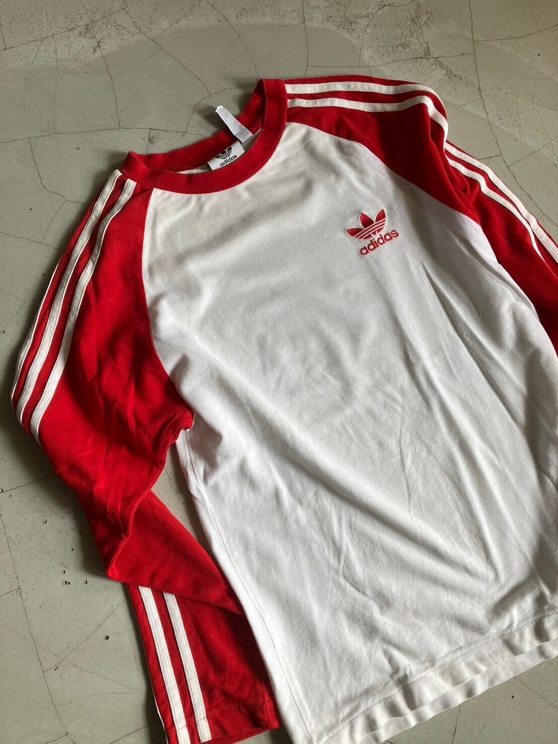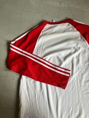 ホワイトとレッドのラグランTシャツ アディダスのトレフォイル刺繍です 着丈67 身幅47 153cm ※ 15,000円以上のご購入で送料無料 ※ お客様都合による注文のキャンセル、返品、サイズ交換はできませんのでご了承ください ※ 汚れや状態などあくまでUSED商品であることをご理解の上お求めください