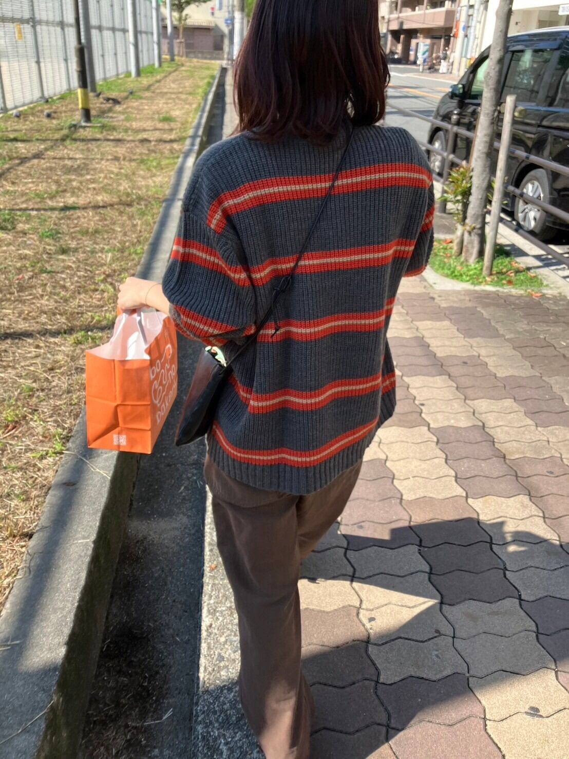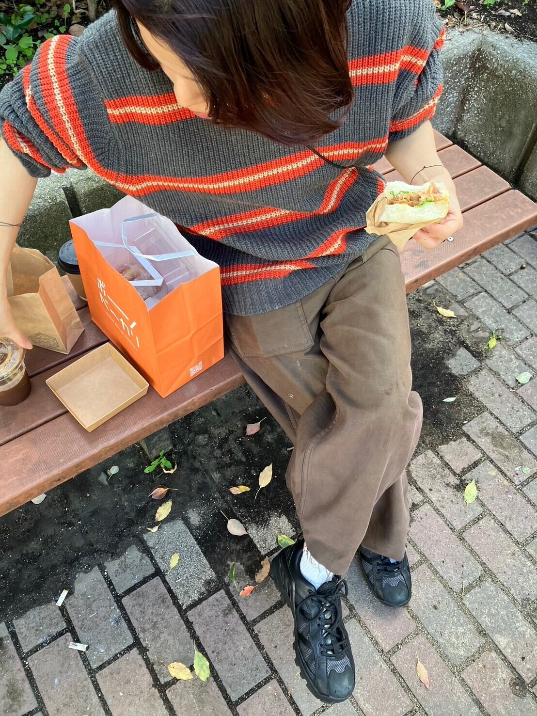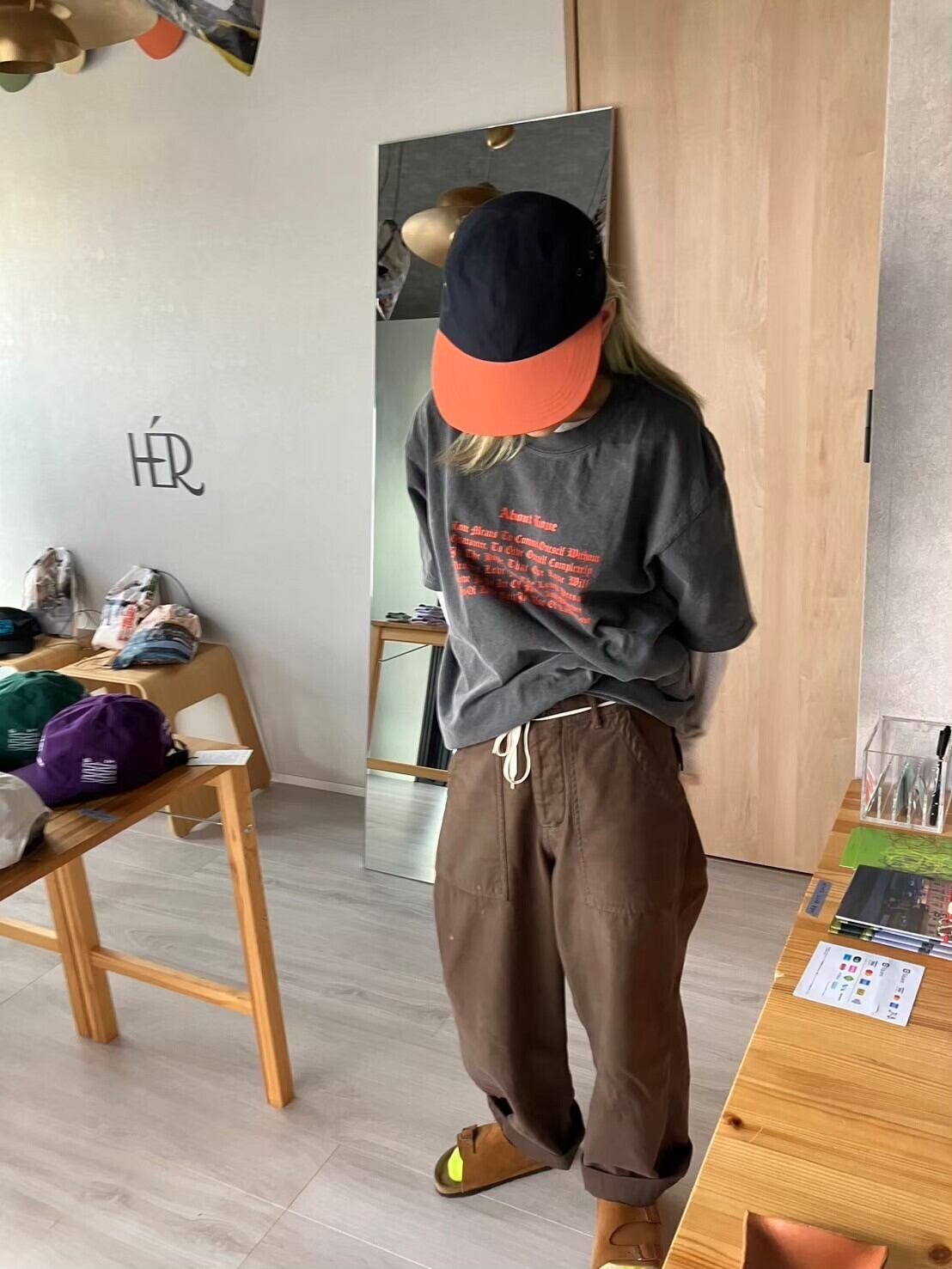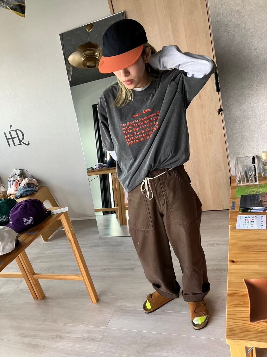 クタクタのカーキのミリタリーパンツをブラウンの染料で染めたもの