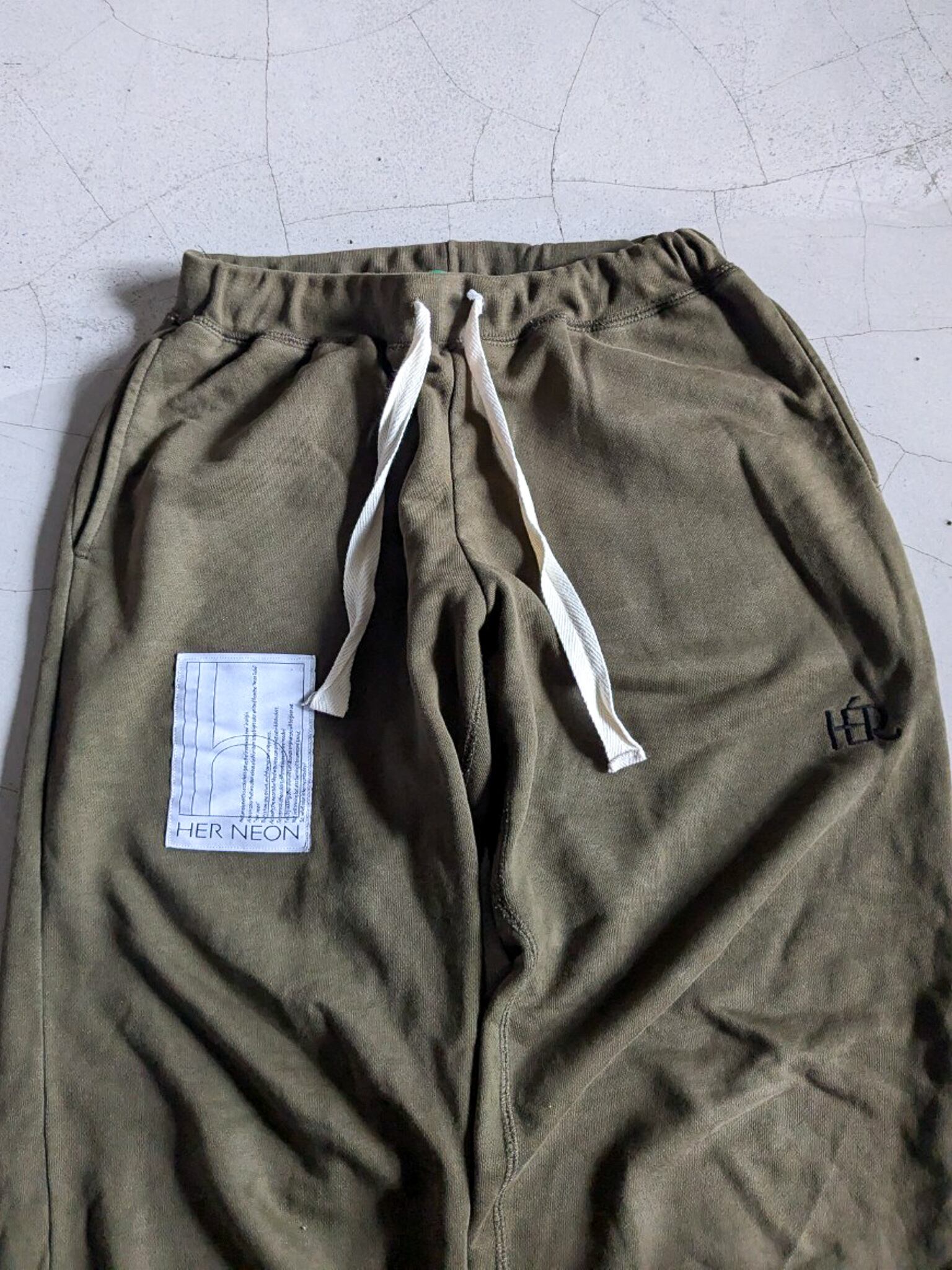 裏パイルで年中快適に着られるスウェットパンツ。 右腿にはオリジナルのホワイトタグ、左腿には刺繍ロゴ入り。