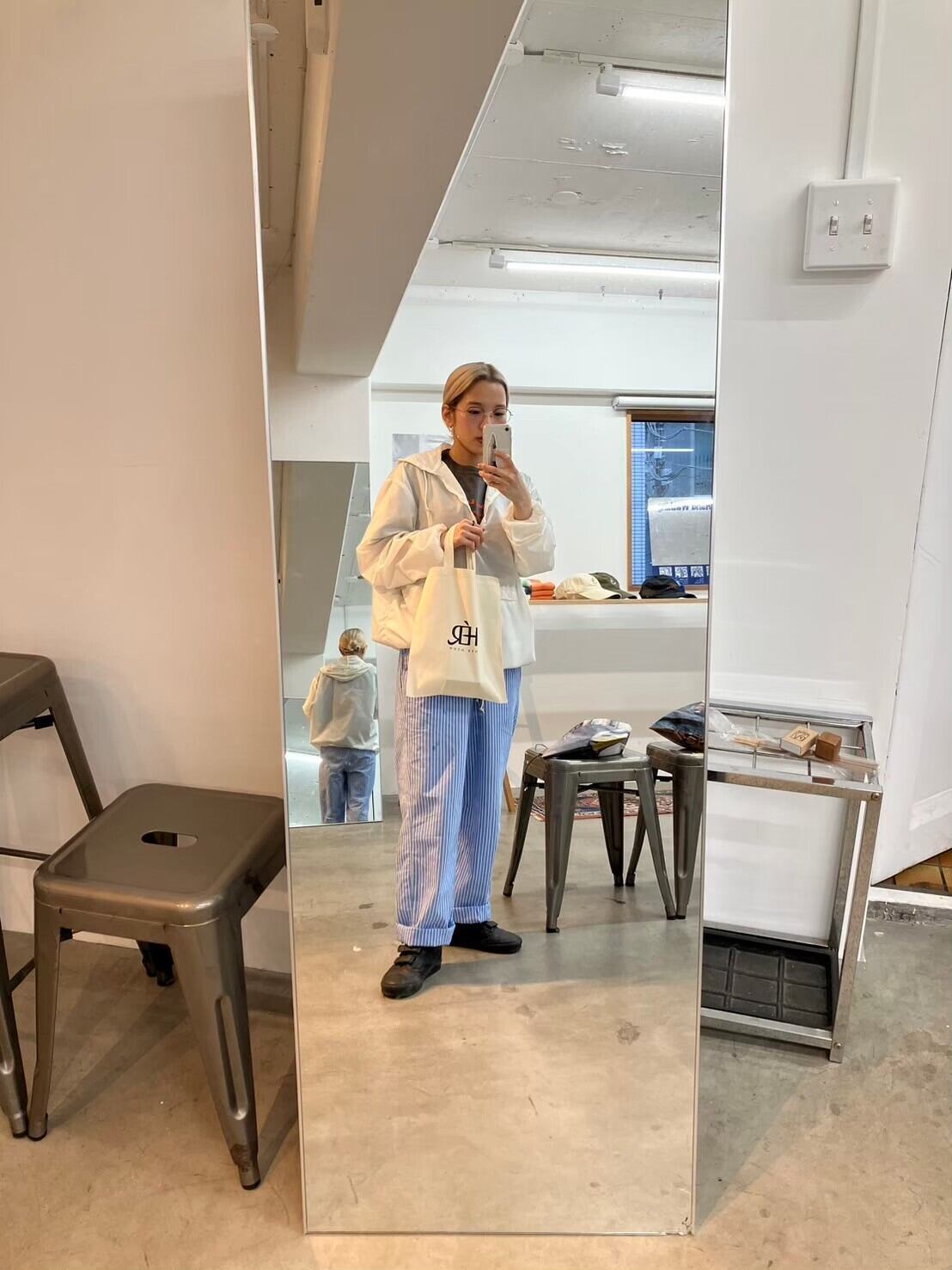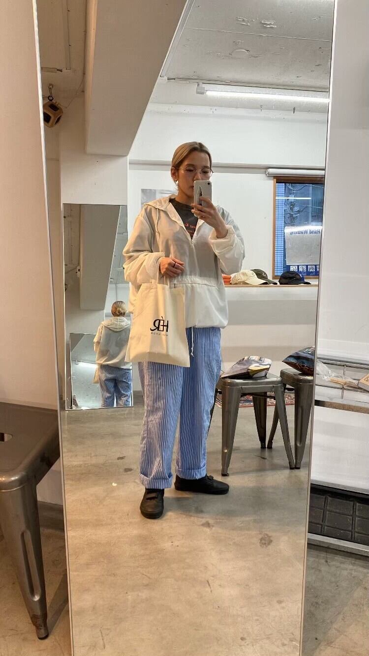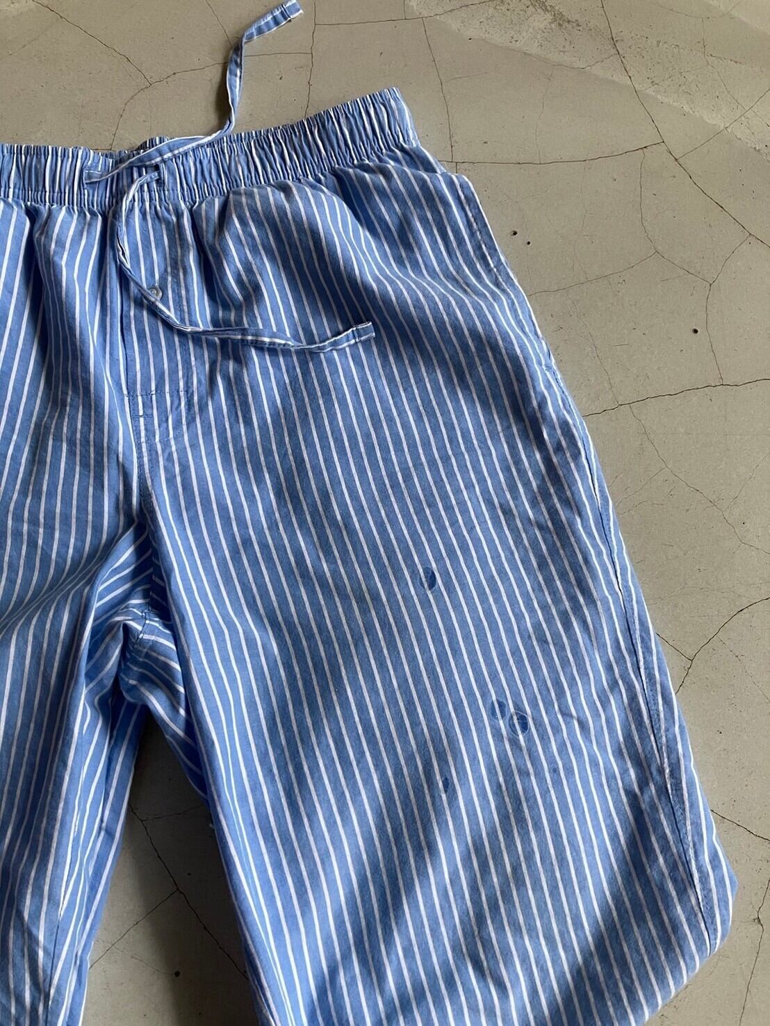 明るめのブルーとホワイトのストライプパンツ