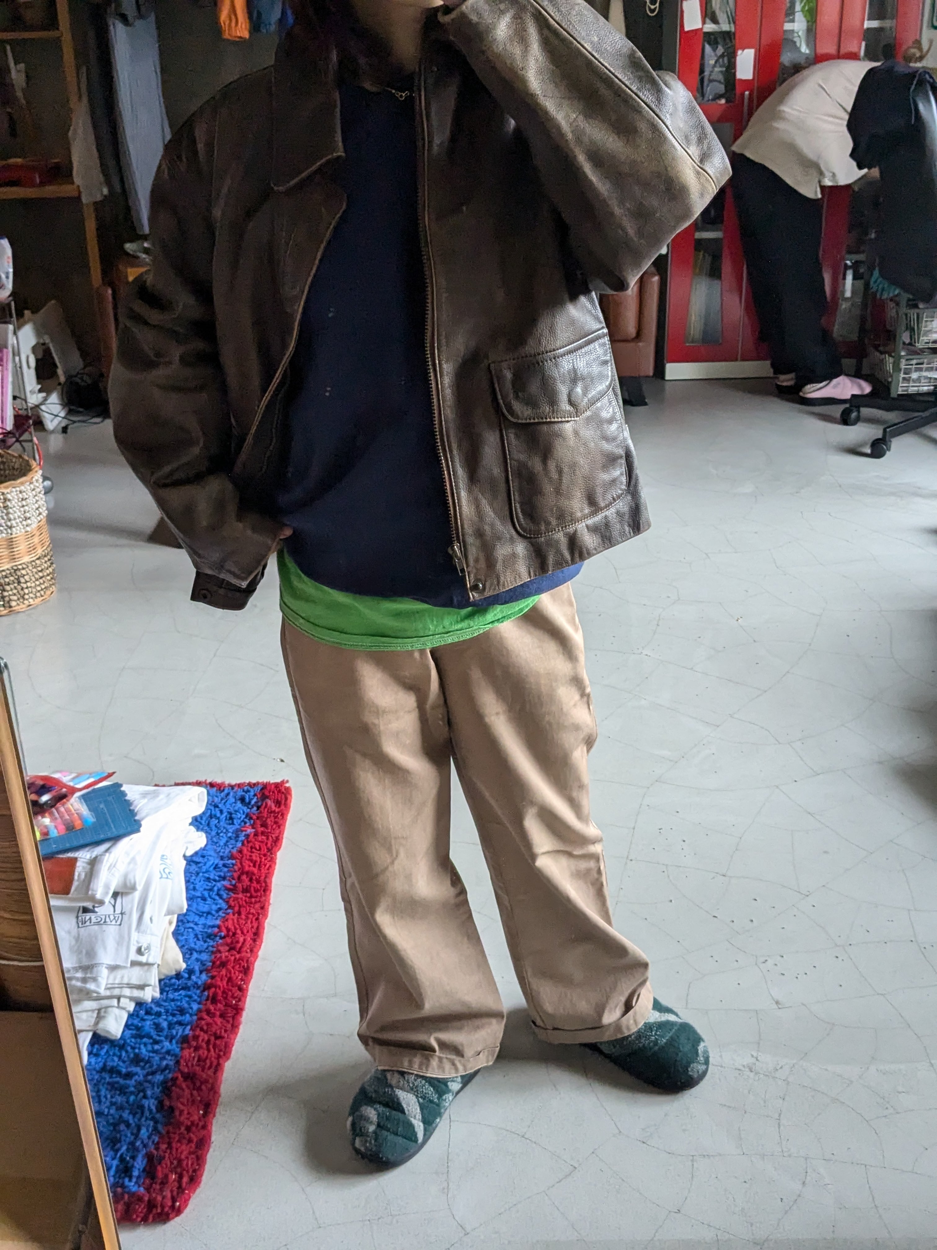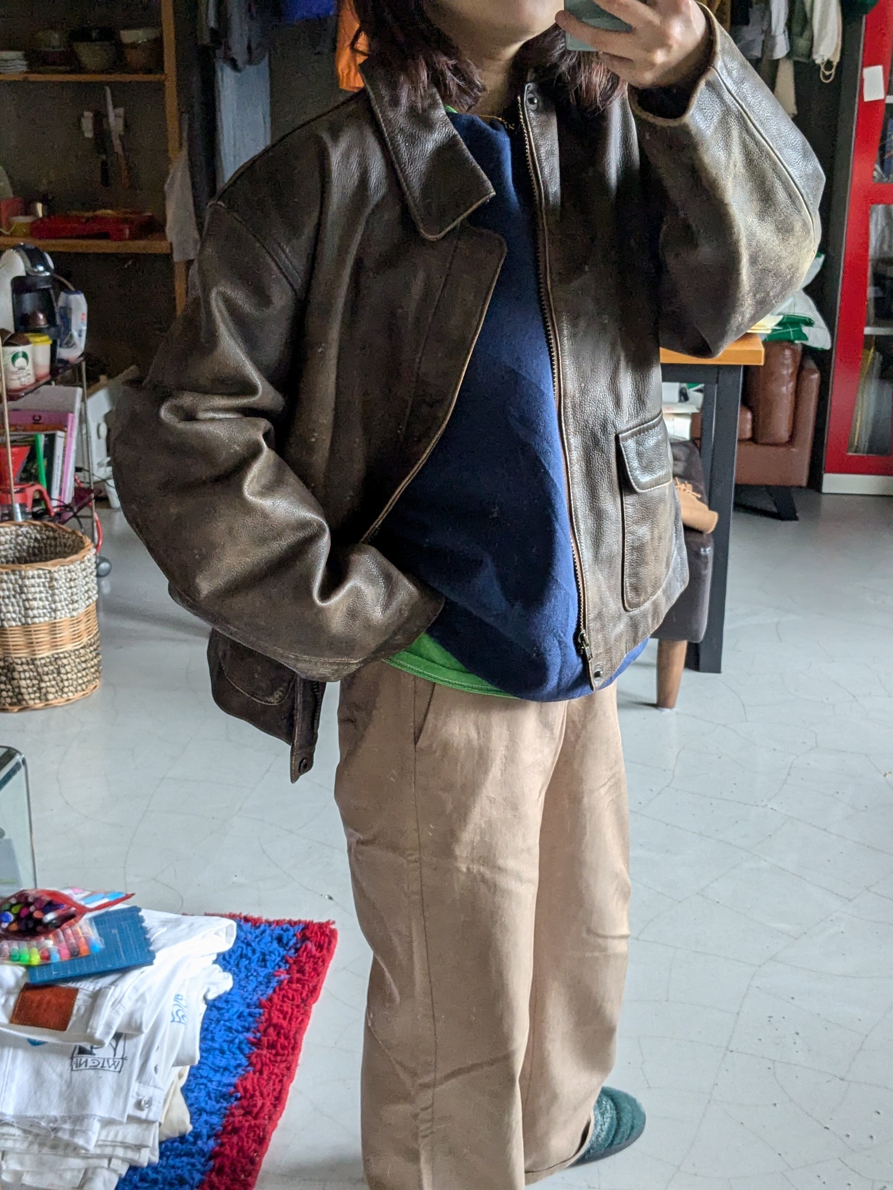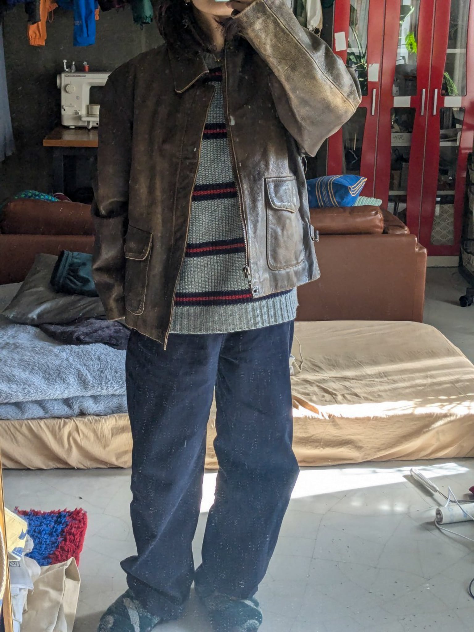 これぞヴィンテージ。 色褪せがかっこいいレザージャケットです。 重さに時代を感じます。 売れなかったら自分で着ます!笑 【サイズ】S 肩幅:約48cm 身幅:約52cm 袖丈:約57cm 着丈:約62cm