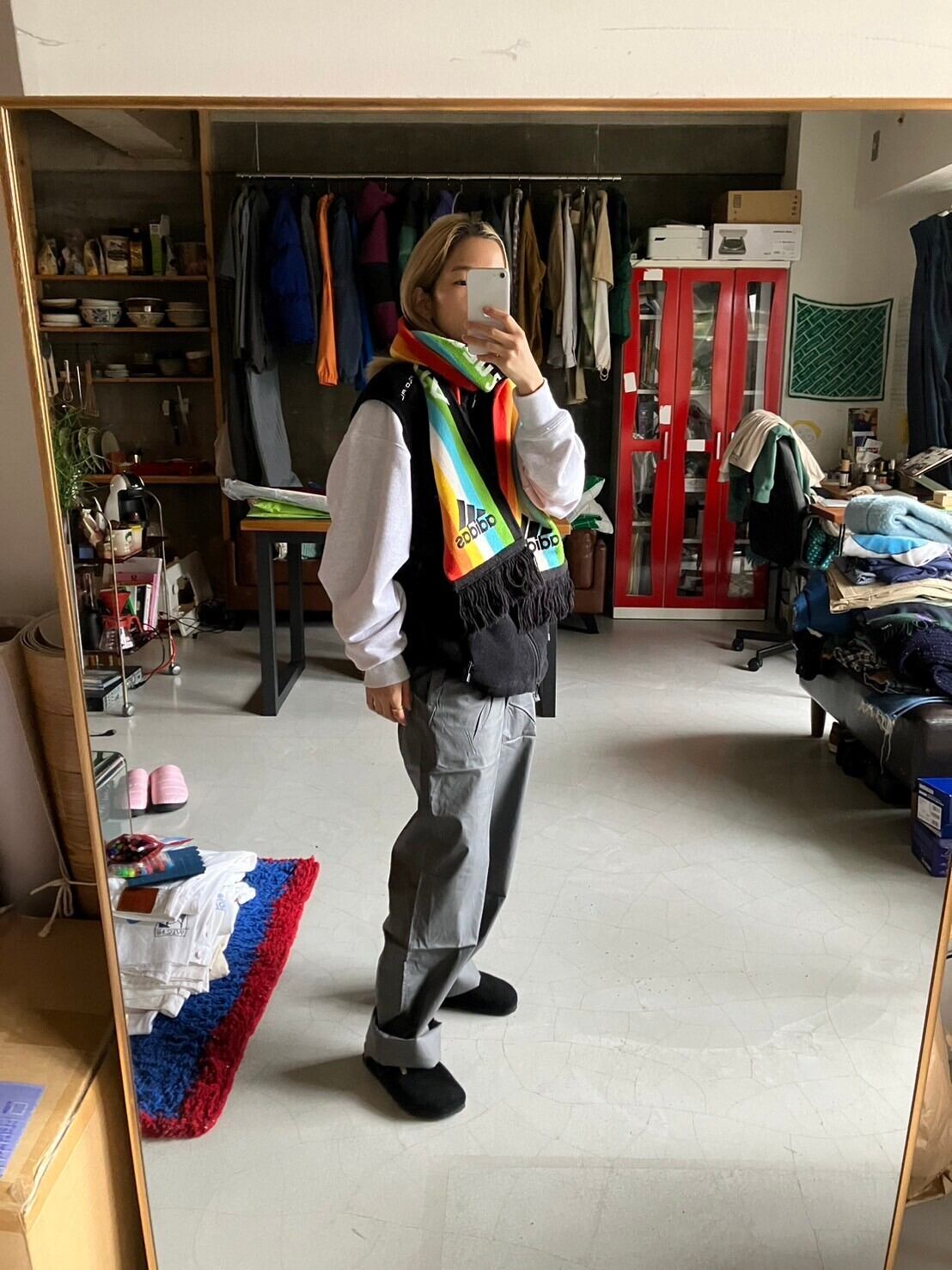 レインボーカラーはモノクロになりがちな冬服のアクセントに持ってこい