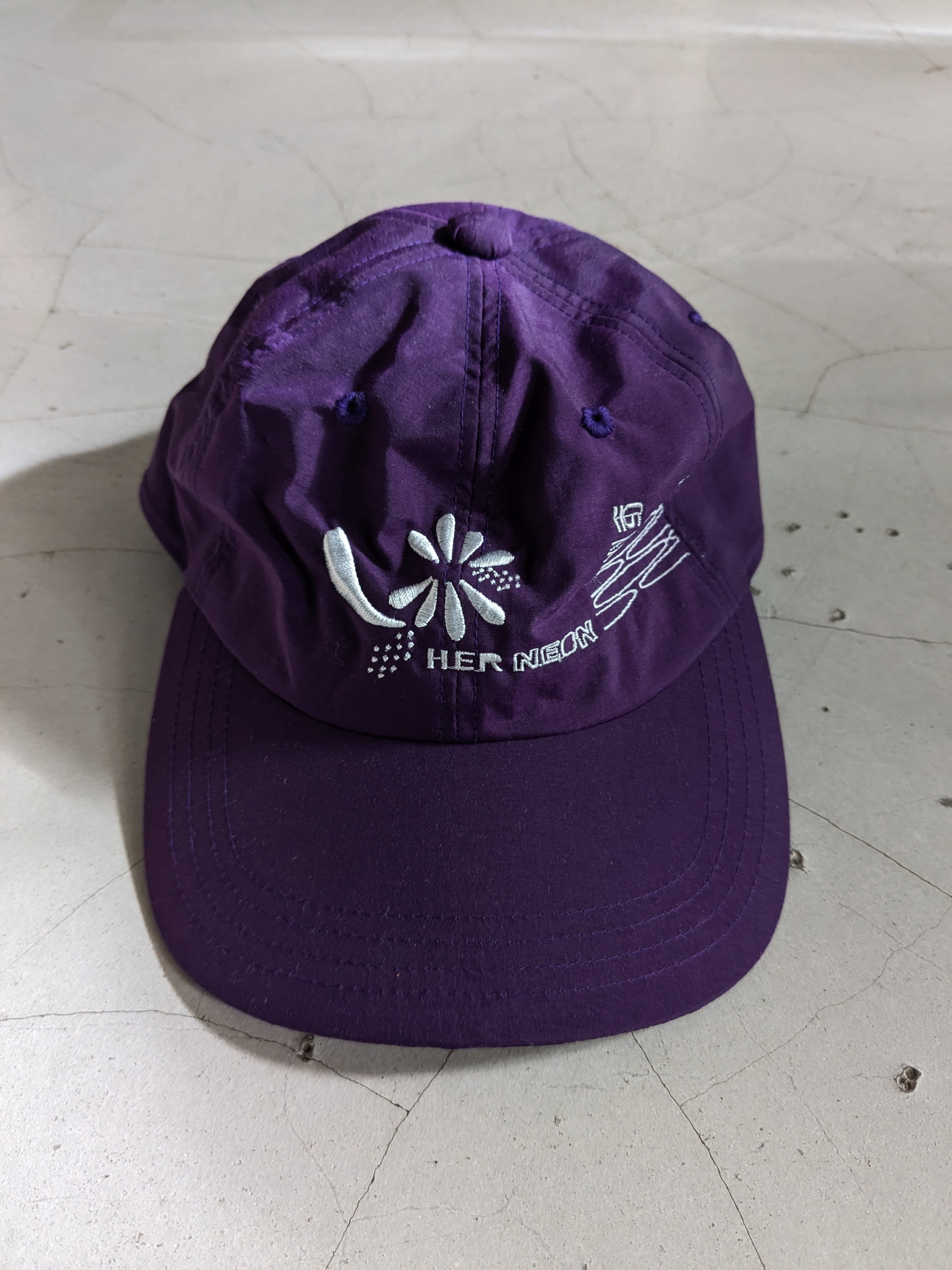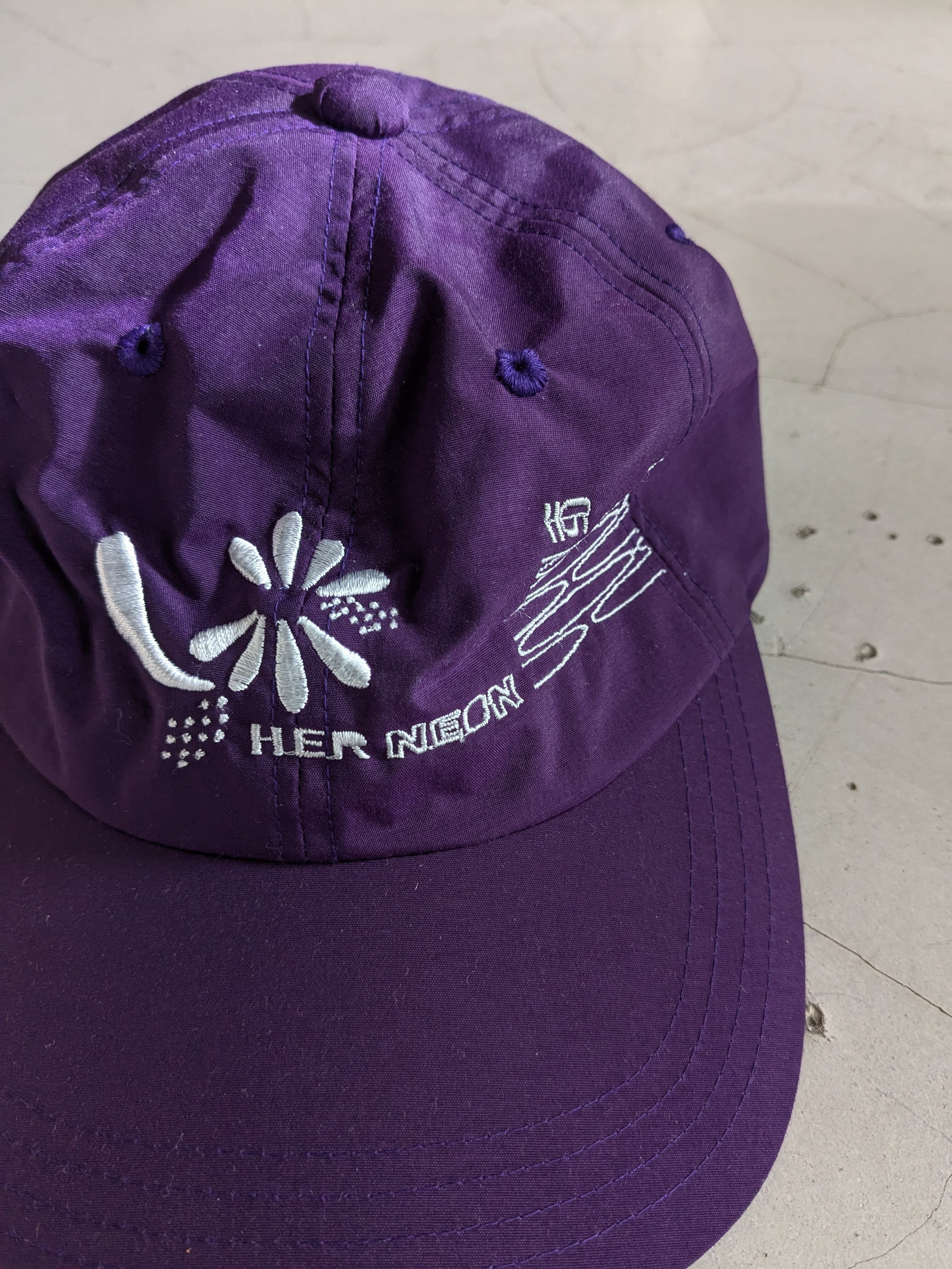 鮮やかなパープルカラーのキャップ
