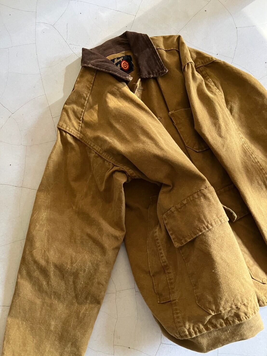 おそらく70年代の物だと思われます。一番上のボタンを締めて着るのが個人的におすすめ。