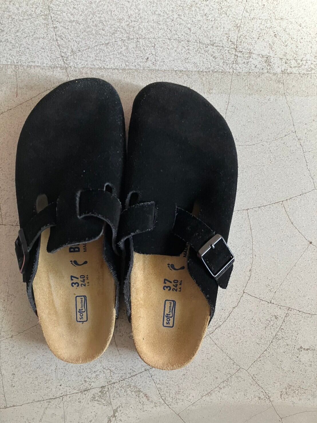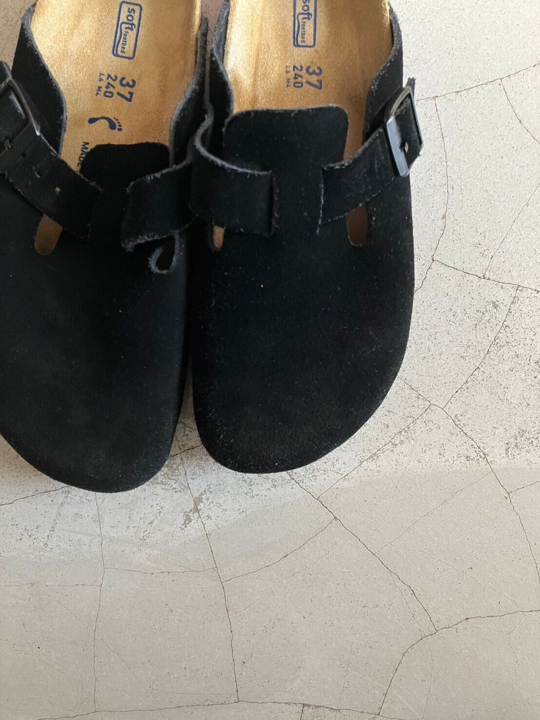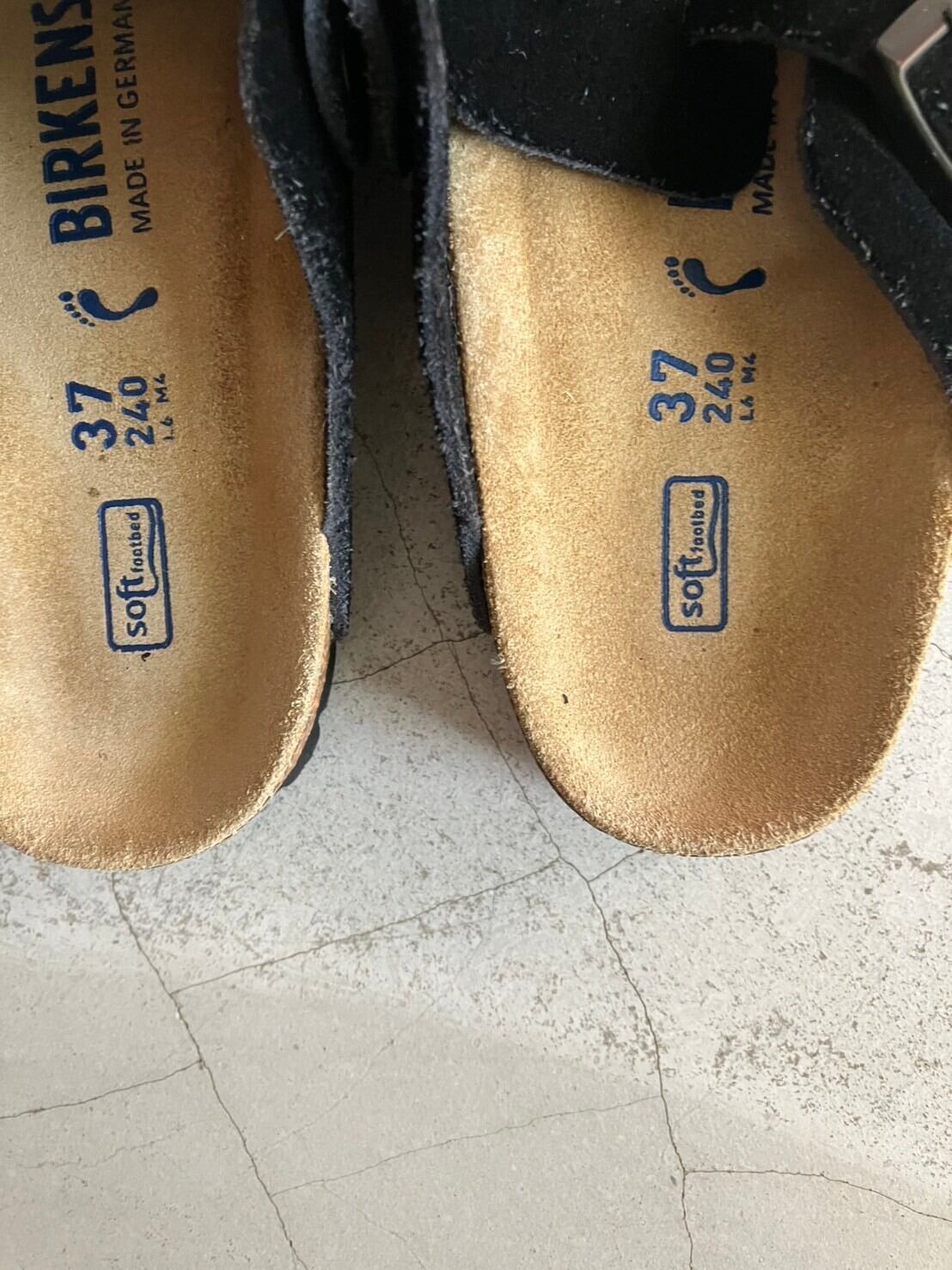 BIRKENSTOCK Boston スエードレザー。カラーはブラックです ソールのヘリもほぼ無く、美品です ビルケンシュトック ボストン サイズ 36 23.0cm ※ 15,000円以上のご購入で送料無料 ※ お客様都合による注文のキャンセル、返品、サイズ交換はできませんのでご了承ください