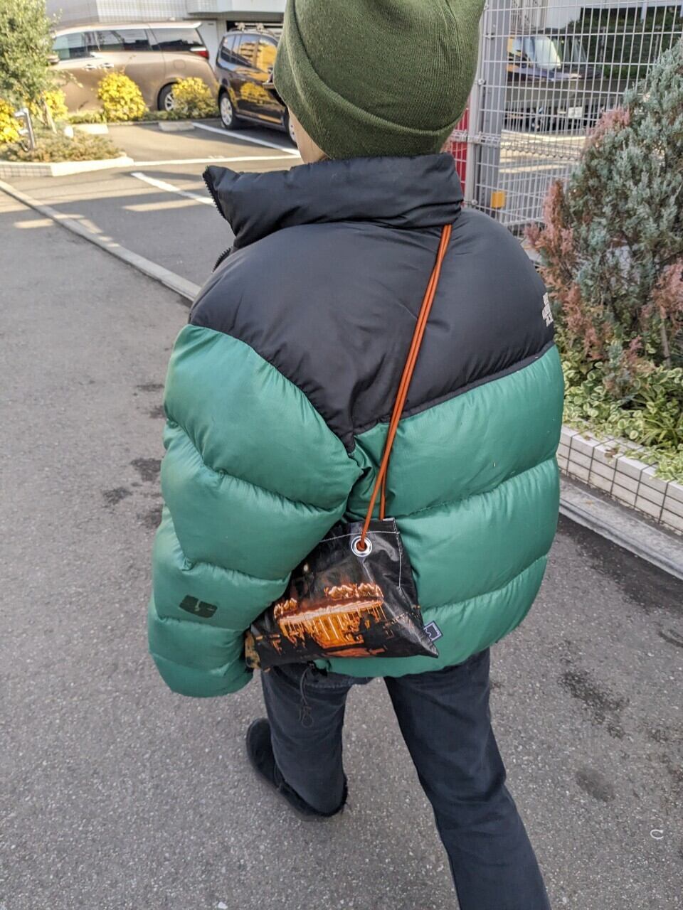 *ロゴ上の先端部が、中央のみ縫い付けられています。最後の画像でご確認ください。