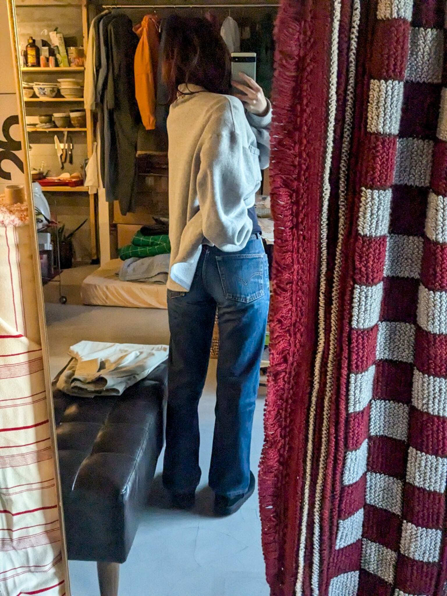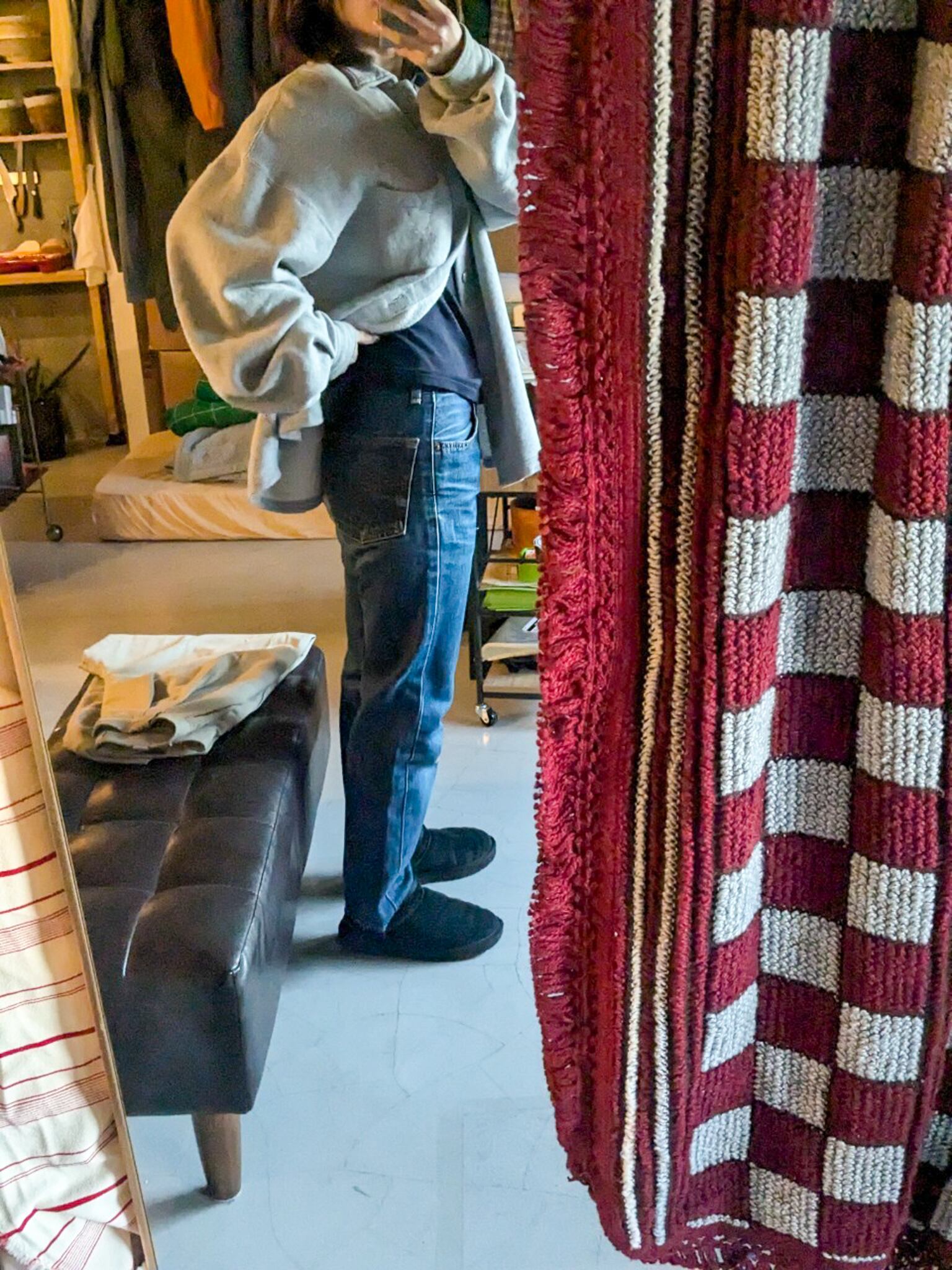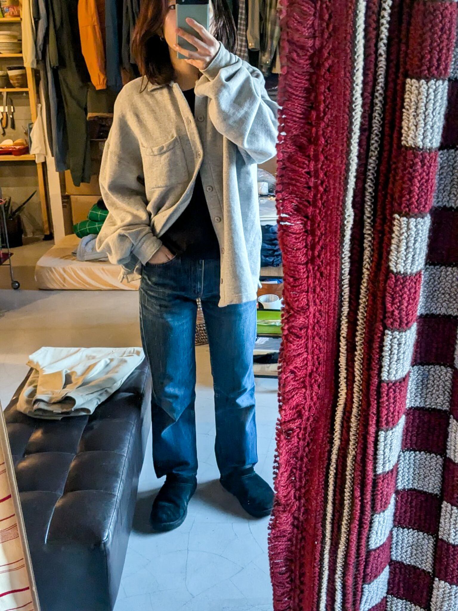 オーバーサイズのニットなどと合わせるのがおすすめ